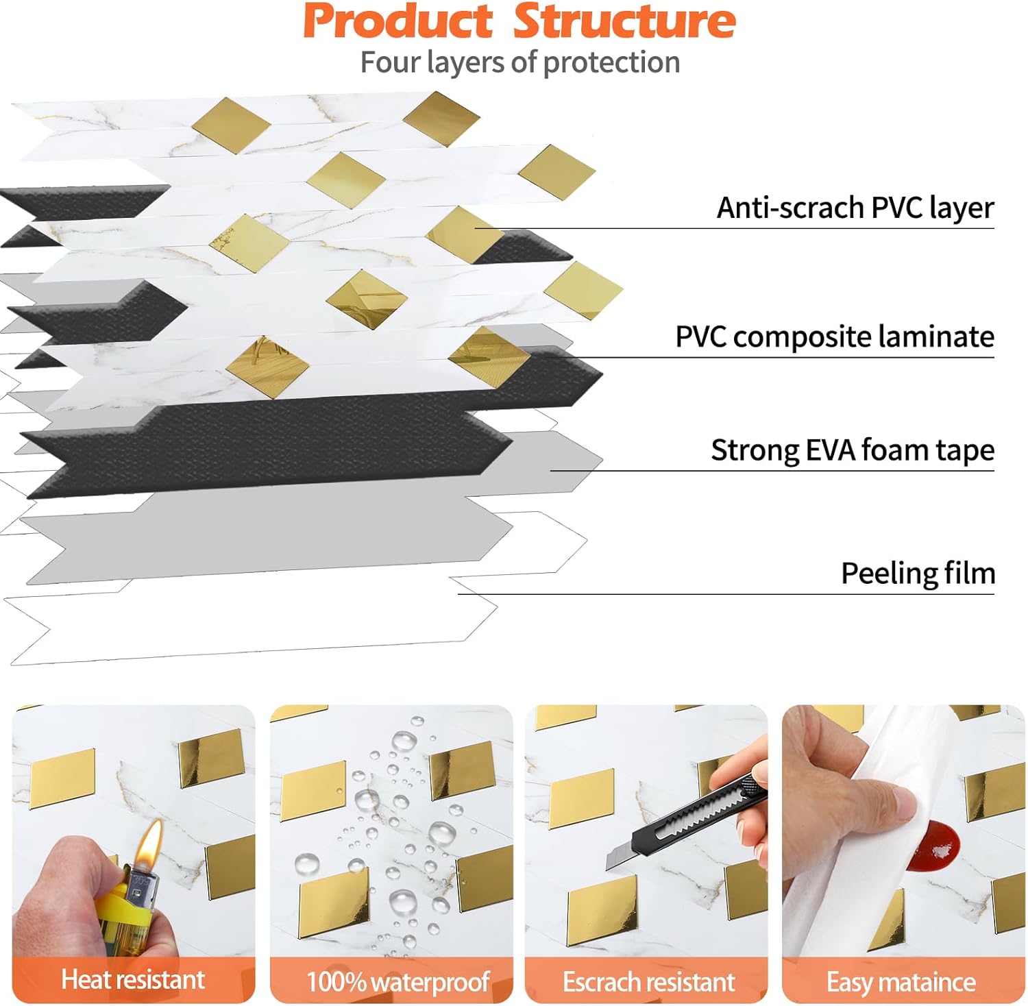 | Additional Features | Heat Resistant, Lightweight, Moisture Resistant, Scratch Resistant, Stain Resistant |