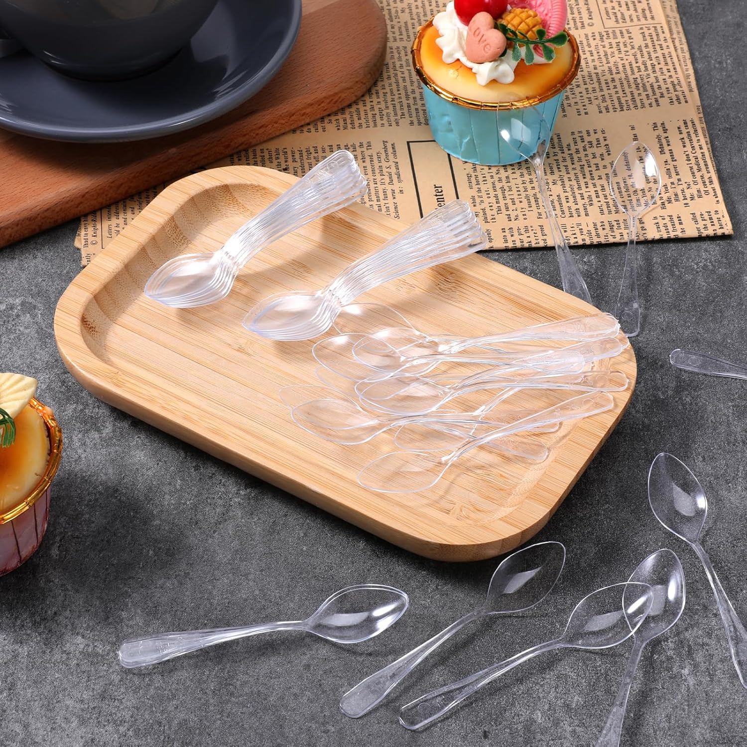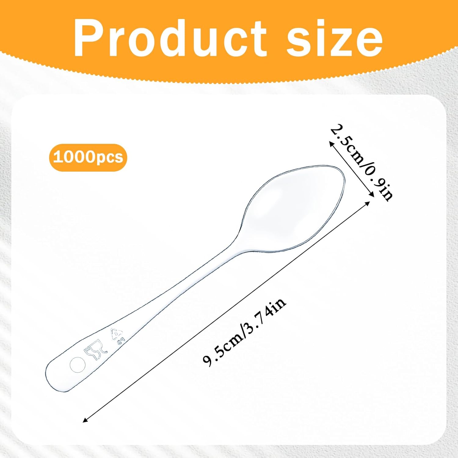 Color: transparentMaterial: plasticLength: 9.5cmPacking list:1000 disposable plastic spoons