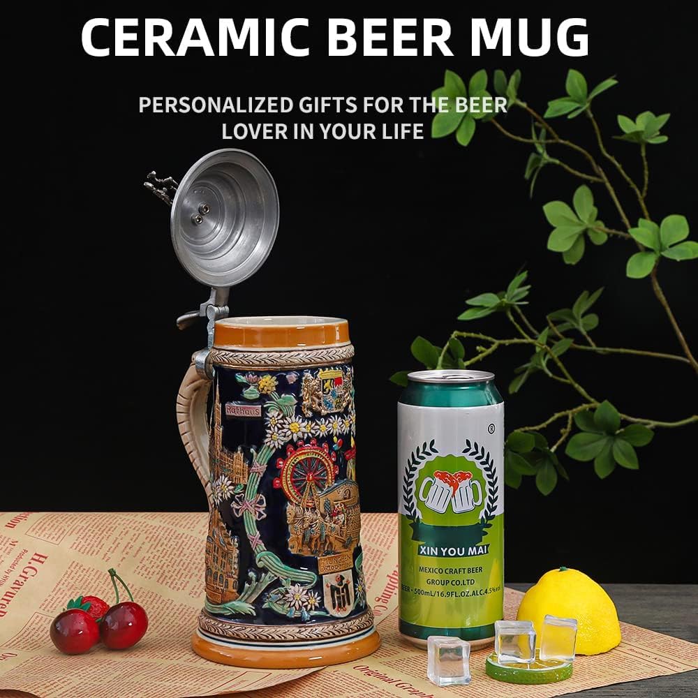 Wrendefull Beer Stein with Lid Beer Mug Germany Beer Cup 0.95L