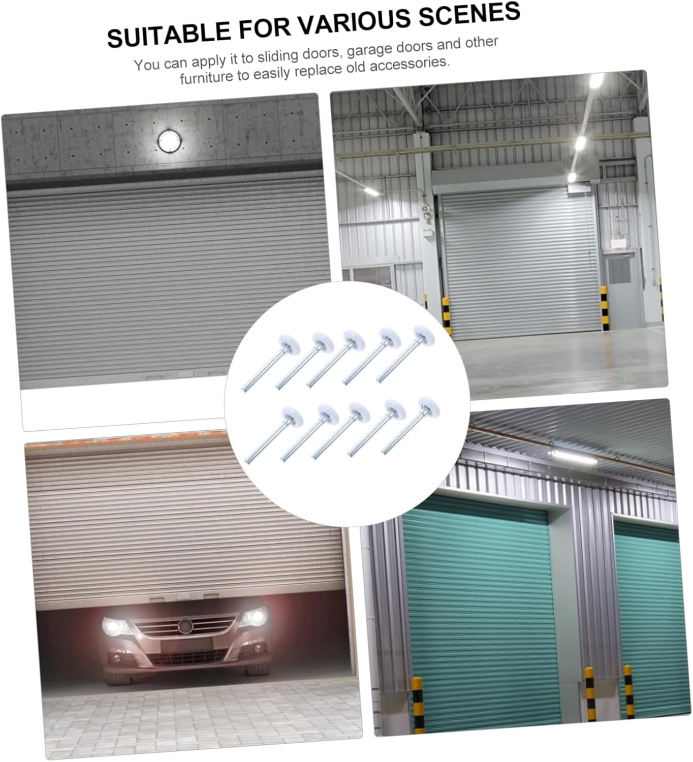Package Include 10 x Guiding Wheels Features - Material: Nylon Garage Door Supplies. - Size: About 12.00X4.60X4.60cm/4.72X1.81X1.81inch Rollers for Garage Door. - Color: Silver Heavy Duty Rollers. - The installation method is simple and will not take you too much time Garage Door Nylon Wheels. - and craftsmanship ensure its durability and practicality Nylon Garage Door Roller. - With reasonable design, it can be used to replace old or broken garage door wheels Heavy Duty Wheel. - It has a wide range of uses and can be used for garage doors, sliding doors, fence doors, etc Nylon Garage Door Wheel. - After process, the texture is firm and you can buy it with peace of mind Garage Door Wheel.Goods DescriptionRollers for Garage Door Are you looking for a professional, yet garage door guide wheel? Are you in search of a sturdy, trustworthy tool that can do multiple jobs? , ! Our professional garage door guide wheel must meet your needs.Garage Door Rollers It is one of for you