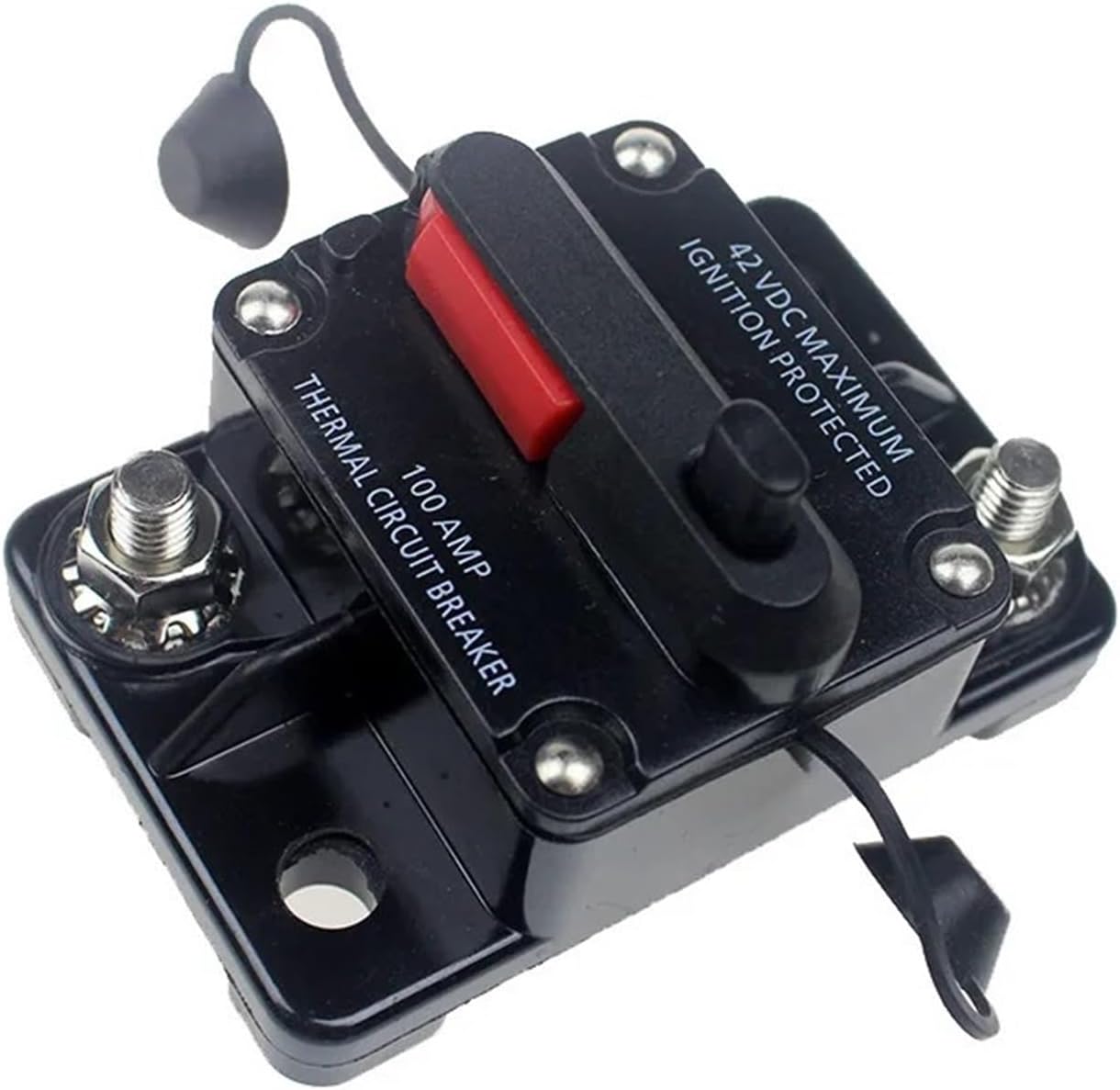 Circuit BreakersDescription:Input voltage:12-42 VDCCurrent:50A,60A,80A,100A,150A,200A,250Auff0c300AOpen circuit speed:normal open circuit speedFunction:Over current protection, over voltage protection, current residual protection, overcharge protection.Size:(LxWxH) 74x49x45mm /2.9*1.9*1.77Stud:1/4-28Color:BlackOperating temperature:-32°C-82°C