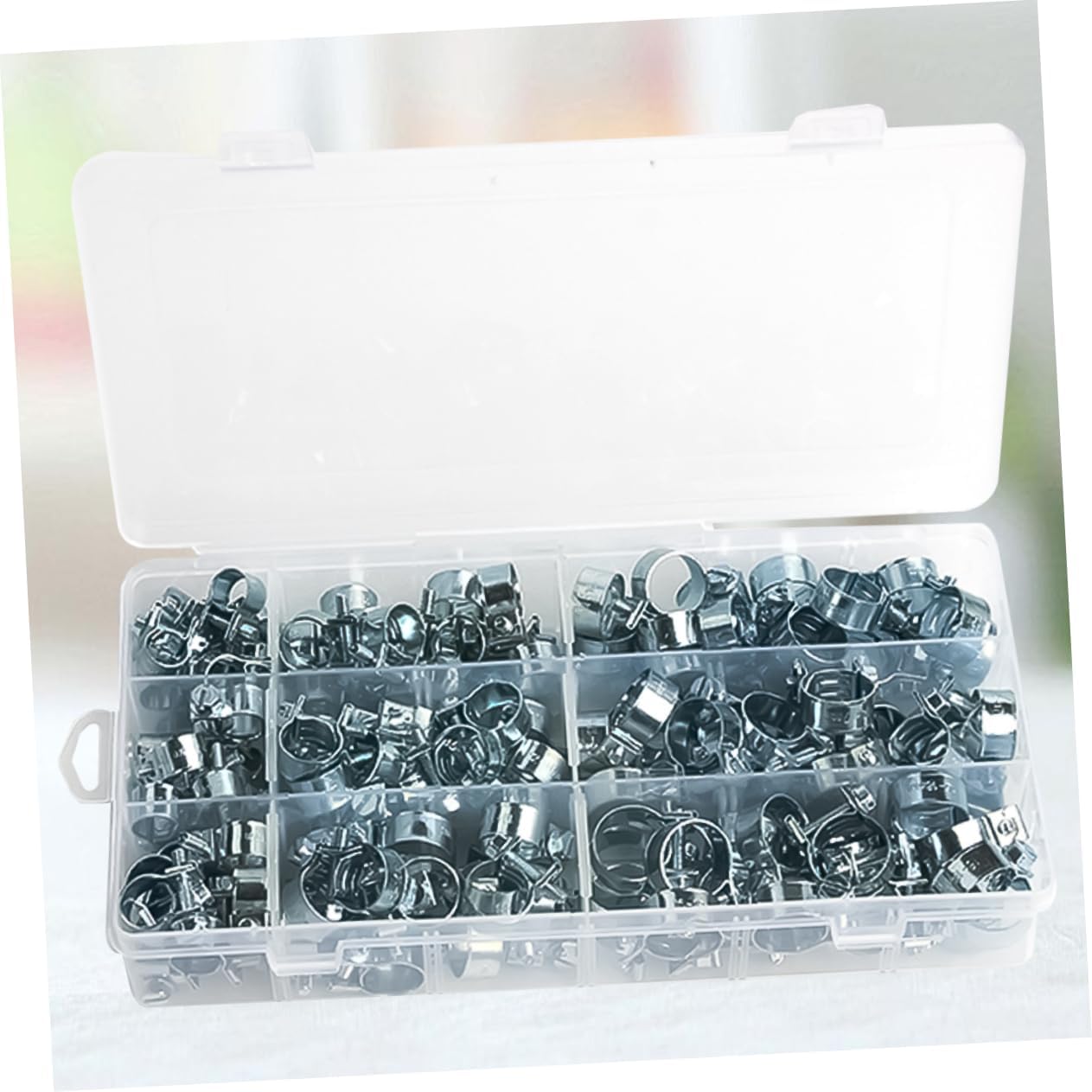 Package List 135 x Hose Clamp Features - Size: Approx. x 4 cm / 9.4 x 4.7 x 1.6 inch Zinc Plating Hose Clip. - Color: Silver Water Clamps. - Material: Metal Mini Spring Buckle for Water. - Made of metal material with zinc plating process, durable and strong for use Metal for Hose. - Differrent sizes to meet your different needs Metal Hose Clamp. - Lightweight and portable, easy to carry out and store. - Suitable for hose air hose, water , line, silicone hose, etc. - Versatile and easy to use and maintain.Goods InformationWater Clamps It is versatile and easy to use and maintain.Zinc Plating Hose Clip Compact in size, light in weight, easy to carry out and store.Mini Spring Buckle for Water This item is a set of 135pcs spring clips, made of and durable metal material with zinc plating process, fit for hose air hose, water , line, silicone hose, etc