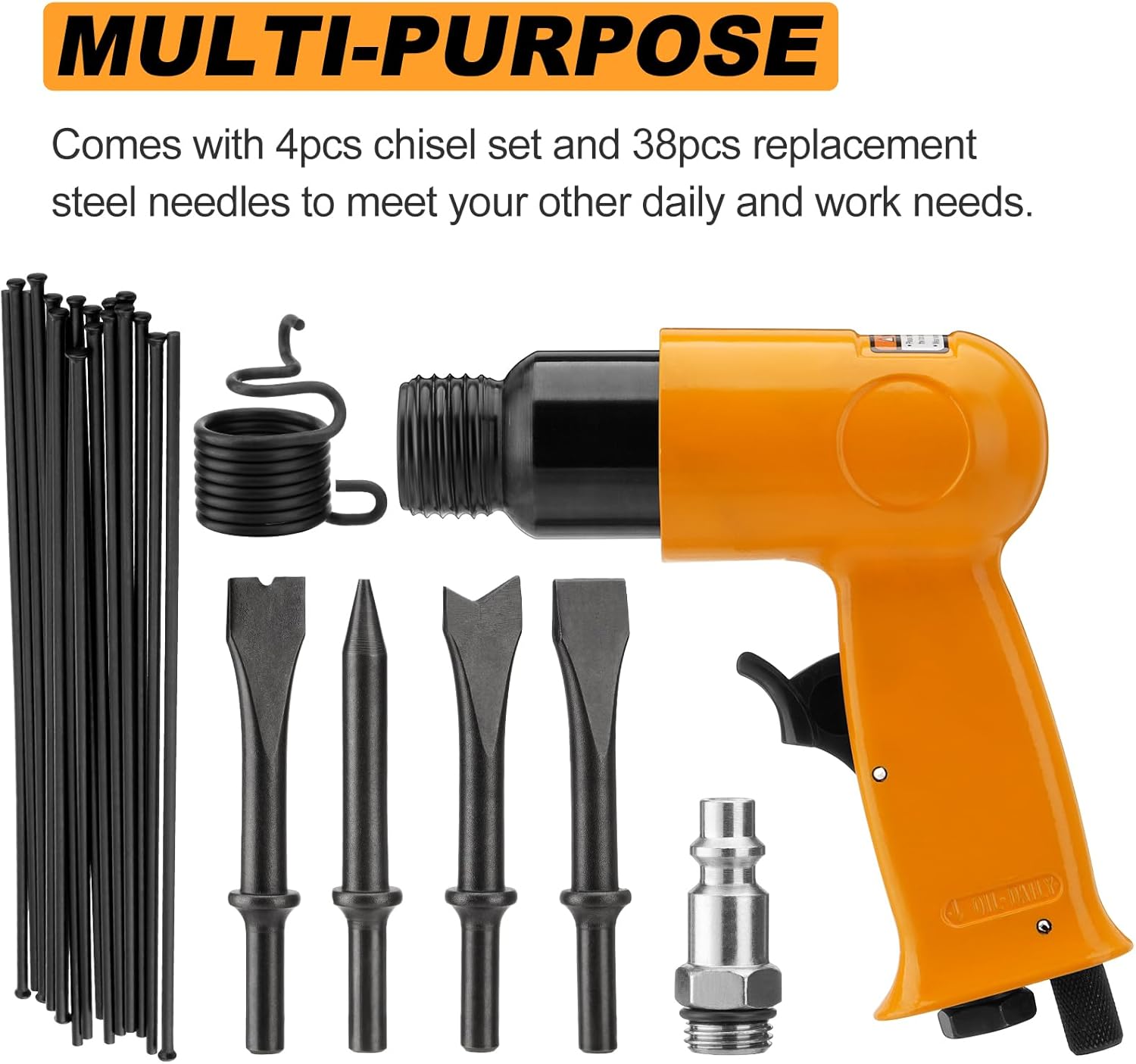 | Included Components | 38PCS Replacement Flat-head Descaling Needles, 4PCS Air Chisel Kit, Air Needle Scaler |