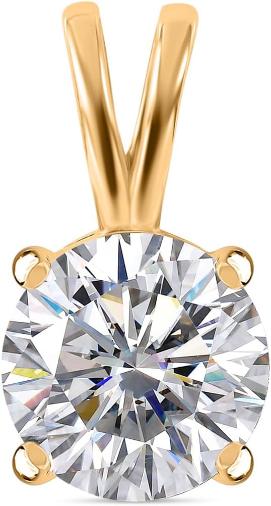 Add timeless elegance to your jewelry collection with this stunning 2.00ct Moissanite Solitaire Pendant Necklace for Women, designed to deliver exceptional sparkle and refined beauty. Featuring a radiant lab created moissanite stone with EF color and VS clarity, this moissanite pendant offers brilliant fire and clarity that closely resemble natural diamonds.Crafted in premium sterling silver with luxurious 18K gold plating, this moissanite necklace for women combines durability with a polished, sophisticated finish. The classic solitaire pendant design enhances the beauty of the center stone, making it perfect for everyday wear or special occasions such as weddings, parties, and celebrations.Made with ethical and conflict-free materials, this moissanite pendant necklace is an environmentally responsible and budget-friendly alternative to traditional diamond jewelry. Whether worn alone or layered with other necklaces, this elegant piece adds effortless charm to both casual and formal outfits.This beautiful moissanite necklace makes a thoughtful gift for birthdays, anniversaries, Valentine’s Day, weddings, engagements, or meaningful milestones. Elevate your style with this premium moissanite solitaire pendant necklace for women that blends brilliance, quality, and timeless design.