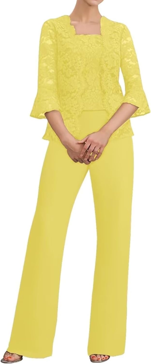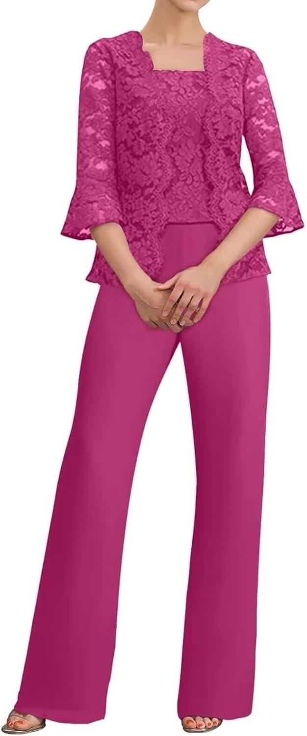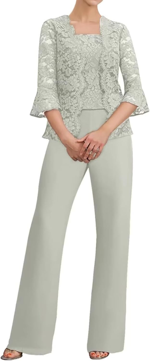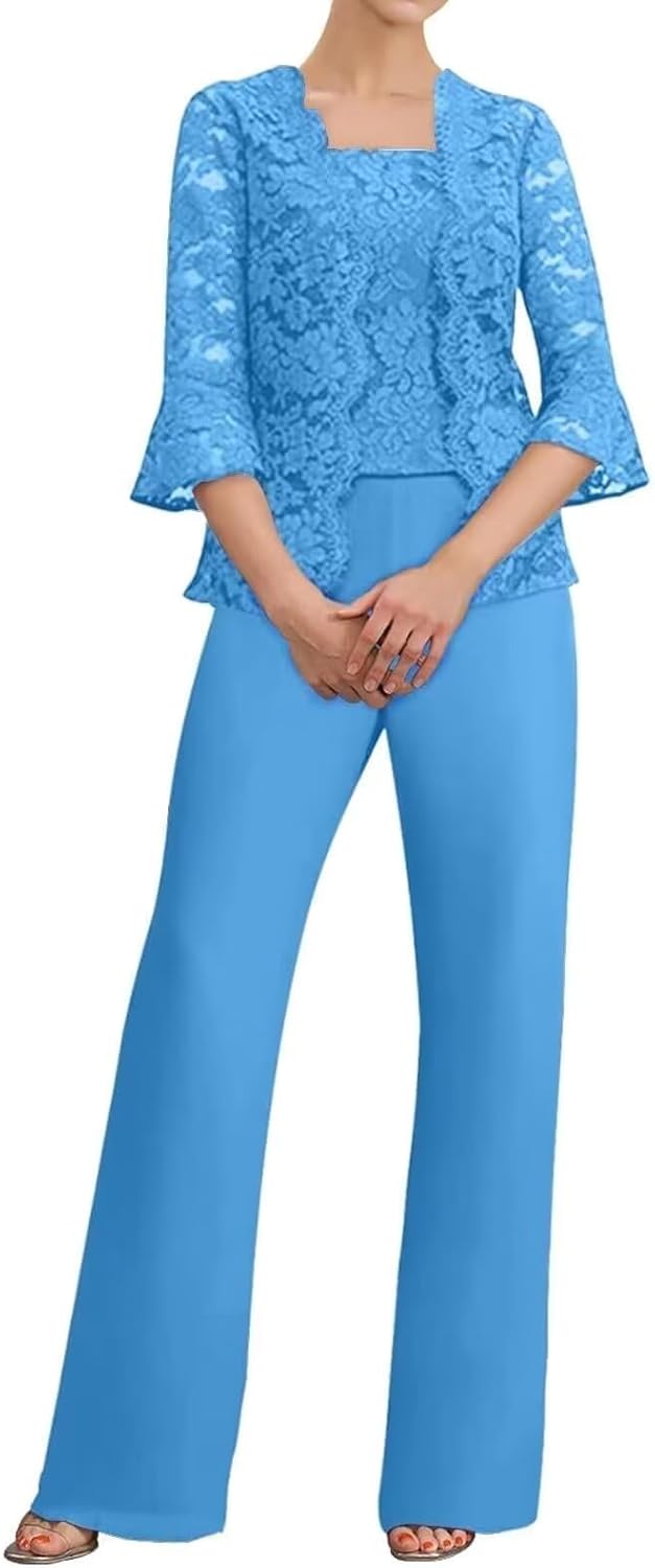 ManDu 3 Pieces Mother of The Bride Pant Suits Lace Evening Formal Outfit Square Neck Wedding Guest PantsuitsProduct Details:Material:Lace Chiffon,Sleeves:Long SleeveLength: Floor LengthSilhouette: A LineBack Design: Zipper ClosureOther: ChiffonSize Chart:(inch)Size 2: Bust32.5, Waist25.5, Hips35.8Size 4: Bust33.5, Waist26.5, Hips36.2Size 6: Bust34.5, Waist27.5, Hips37.8Size 8: Bust35.5, Waist28.5, Hips38.6Size 10: Bust36.5, Waist29.5, Hips39.7Size 12: Bust38, Waist31, Hips41.3Size 14: Bust39.5, Waist32.5, Hips42.9Size 16: Bust41, Waist34, Hips44Plus Size:Size 18: Bust43, Waist36.2, Hips45.5Size 20: Bust45, Waist38.5, Hips47.5Size 22: Bust47, Waist40.9, Hips49.5Size 24: Bust49, Bust43, Hips51.5Size 26: Bust51, Waist45.2, Hips53.5Customized sizes and Rush order are also available.Please send us your detail size as follow:1.Full Bust __ cm2.Waist __ cm3.Hips __ cm4.Hollow to hem(shoulder to floor with heels) __ cm5.Natural height:__cm6.High Heels__cmNotes:1.Due to camera and monitor settings,the true color of the item may differ slightly from the picture on the website.If you mind,please place your order with caution!2.Hand wash,do not bleach.