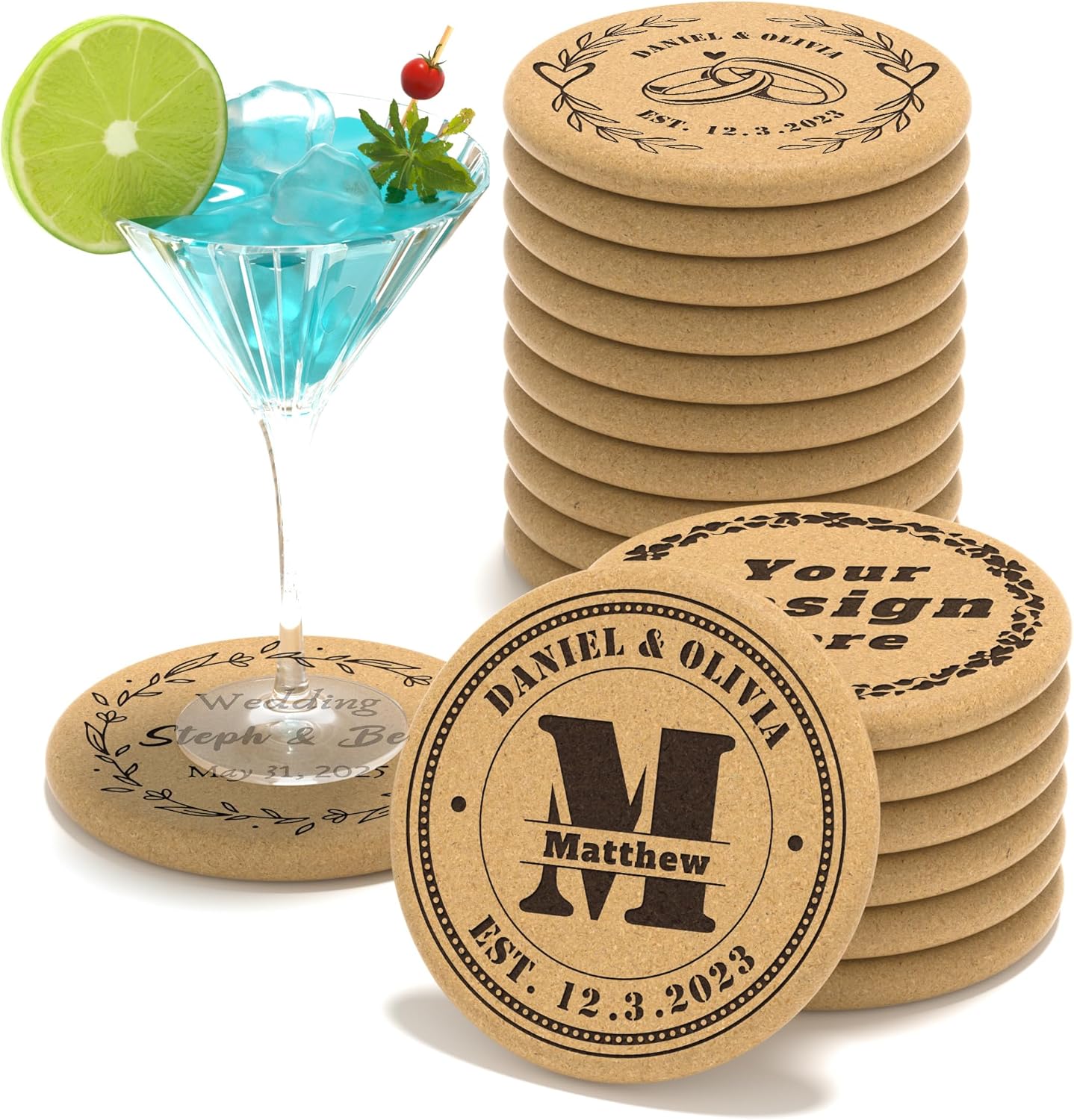 MARRILYTON Custom Cork Coasters for Drinks: Function Meets CustomizationExpress Yourself Freely Through CustomizationWith MARRILYTON's customized cork coasters, you can craft unique gifts. Personalize them with your photo, logo or message. These coasters are incredibly versatile. They're perfect for use at home, work, bars, coffee shops, or pubs. They double as elegant placemats, enhancing your table's look. Ideal for birthdays, Mother's Day, Father's Day, Valentine's Day, housewarming, and Christmas, they add thoughtfulness to any occasion.Premium Quality Natural CorkOur custom wedding coasters are carefully made from real natural cork. They're durable and stylish, so professional bartenders prefer them. Home entertainers like their classic look that fits any home decor, and everyday families value their practicality. The natural texture of cork gives these coasters a unique charm.Suitable Size Cork CoastersOur customized cork coasters are sized to fit nearly any cup or glass. Whether it's a dainty coffee mug or a big beer glass, they serve as dependable cup mats. Their shape and size keep drinks stable, preventing spills and giving you a worry - free time enjoying your beverage.Comprehensive Tabletop ProtectionMARRILYTON cork drink coasters offer more than just a surface to rest your drinks. They are engineered to be stable, ensuring your glasses stay upright. They are waterproof, guarding against moisture - related damage, and have a non - slip surface that keeps your containers in place. Additionally, they provide insulation against both cold and heat, effectively protecting your desktop from stains, heat marks, and any potential harm caused by temperature fluctuations.