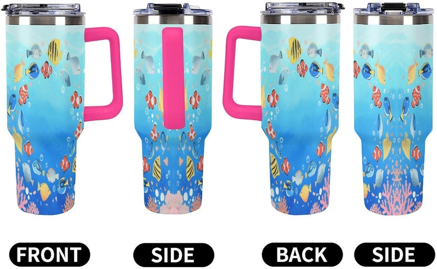 Whether you're on a long drive, a busy commute, or an outdoor adventure, staying hydrated is crucial. Our large-capacity car tumblers featuring the Tropical Fish pattern were developed with this need in mind. They're the perfect solution for on-the-go hydration, ensuring a smooth and comfortable journey. With an impressive 40-ounce capacity, this insulated stainless steel travel tumbler easily meets your frequent hydration needs, from your morning commute to your after-get off work workout or even a full-day road trip. Without constantly searching for water, you can focus on the road ahead and say goodbye to thirst. Whether you're sweating it out on a scorching summer day or sweltering in your car on a dry winter night, staying hydrated helps you perform at your best. We understand your appreciation for quality and aesthetics, and our car tumblers feature unique designs that complement any vehicle's interior, exuding understated elegance. More than just a practical tool, they're the perfect finishing touch, adding a touch of style to your vehicle's interior.