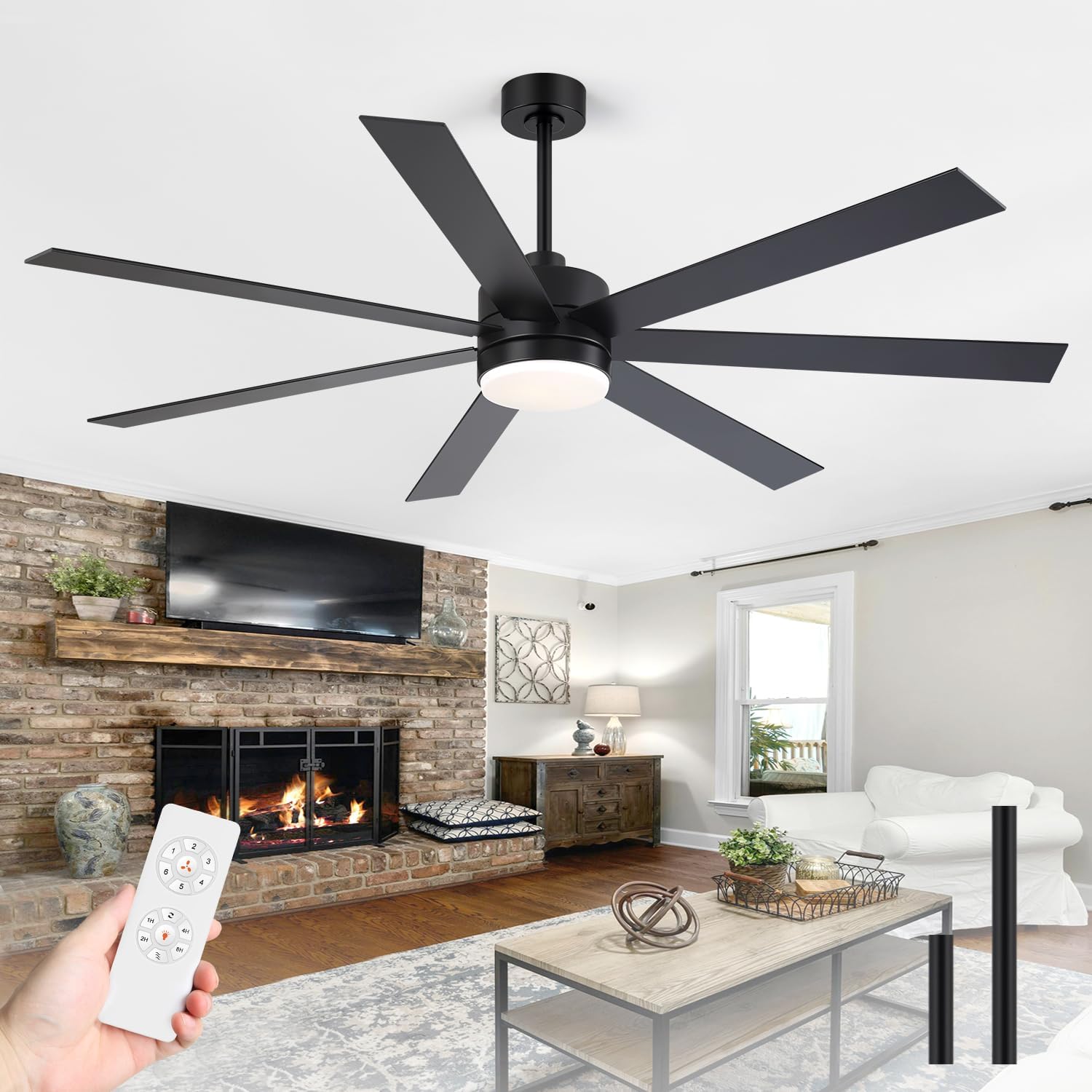 | Included Components | 1 x 72 inch 7-Blade Large Black Ceiling Fan Light, 1 x Remote Controller Kit, 2 x Down Rods (1 x 6", 1 x 12"), 7 x Dual Finish Blades |
