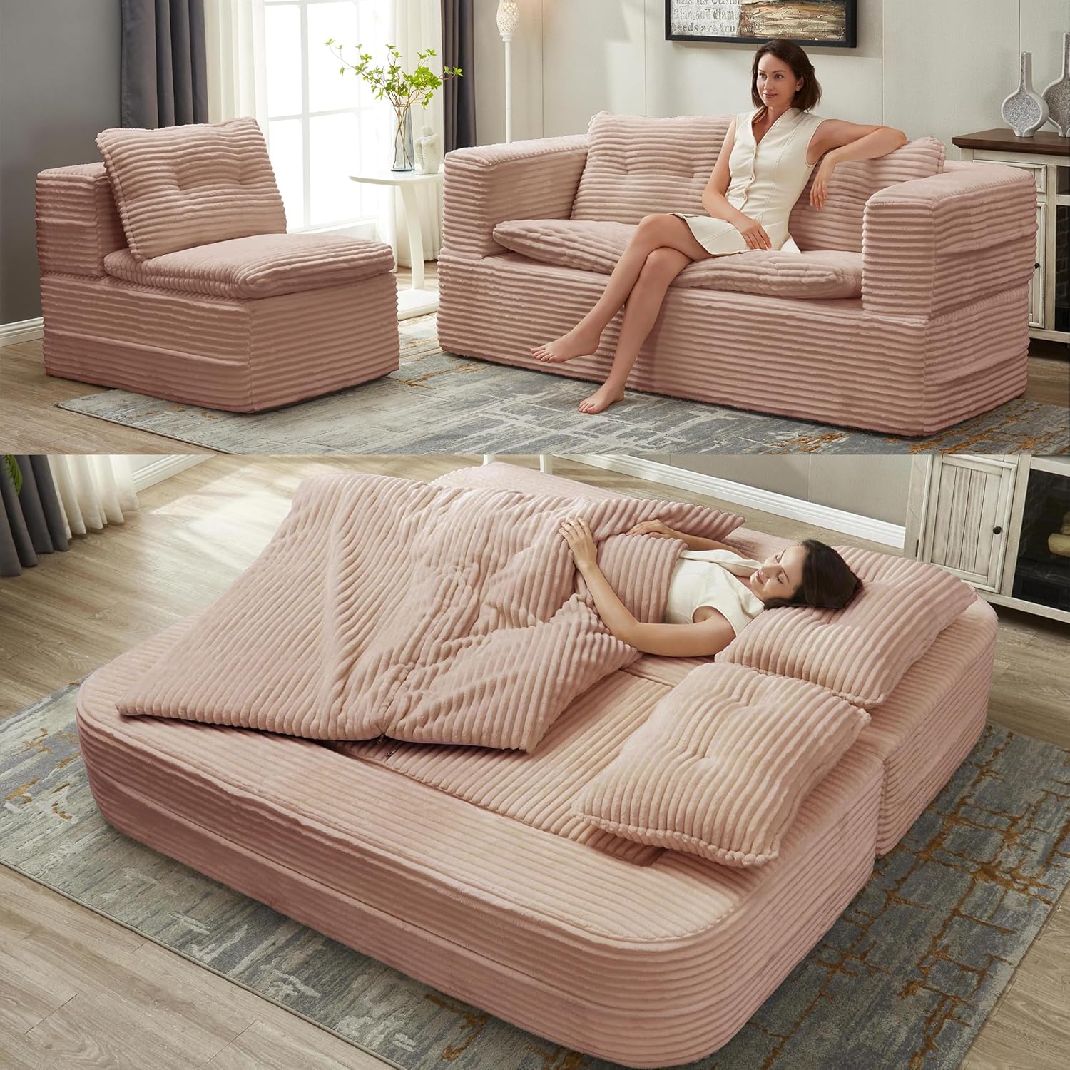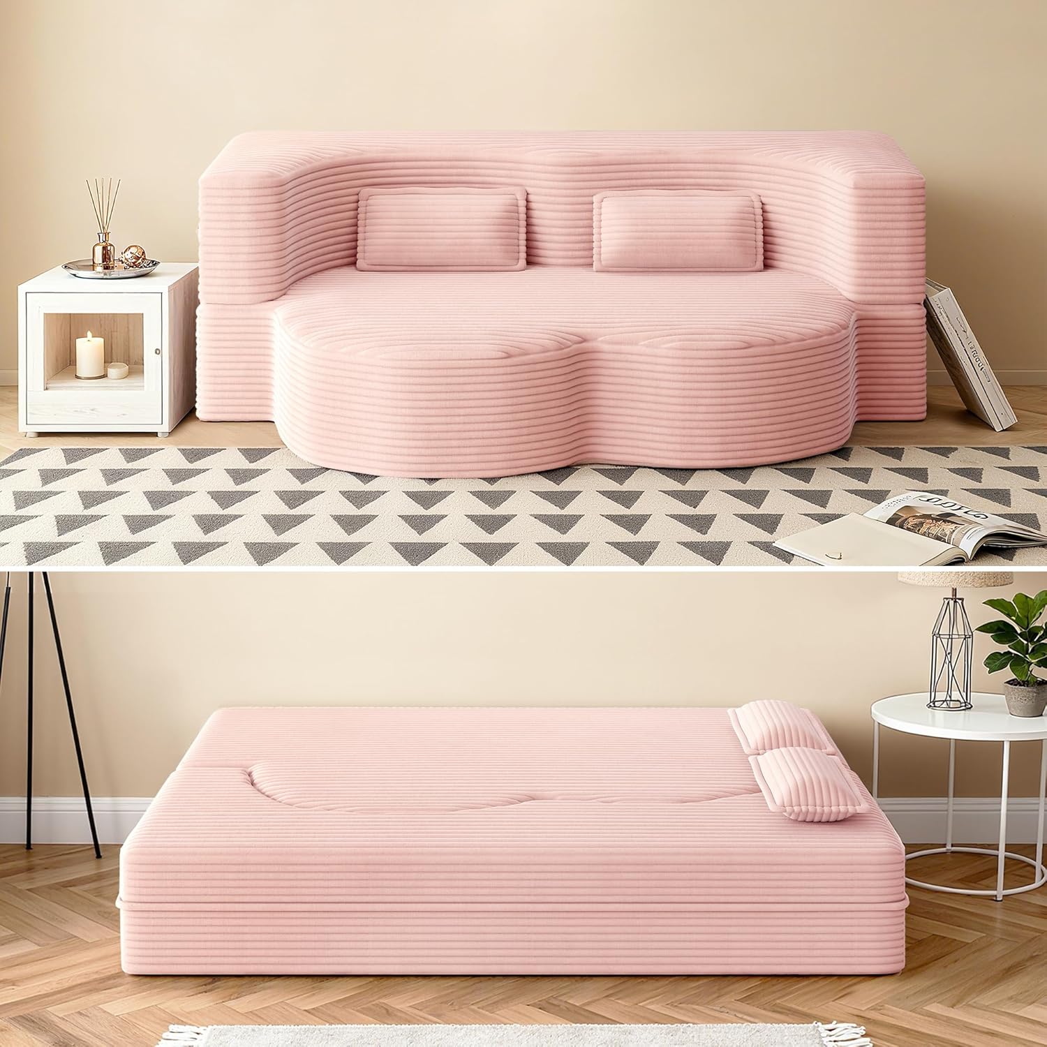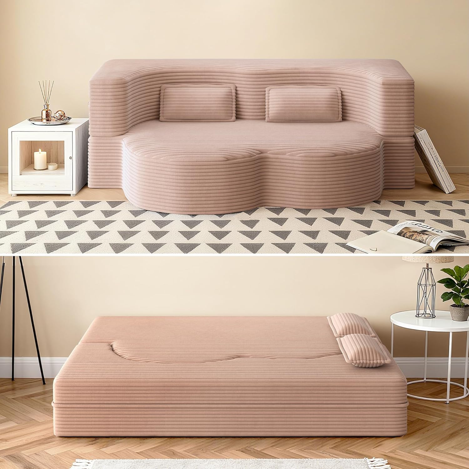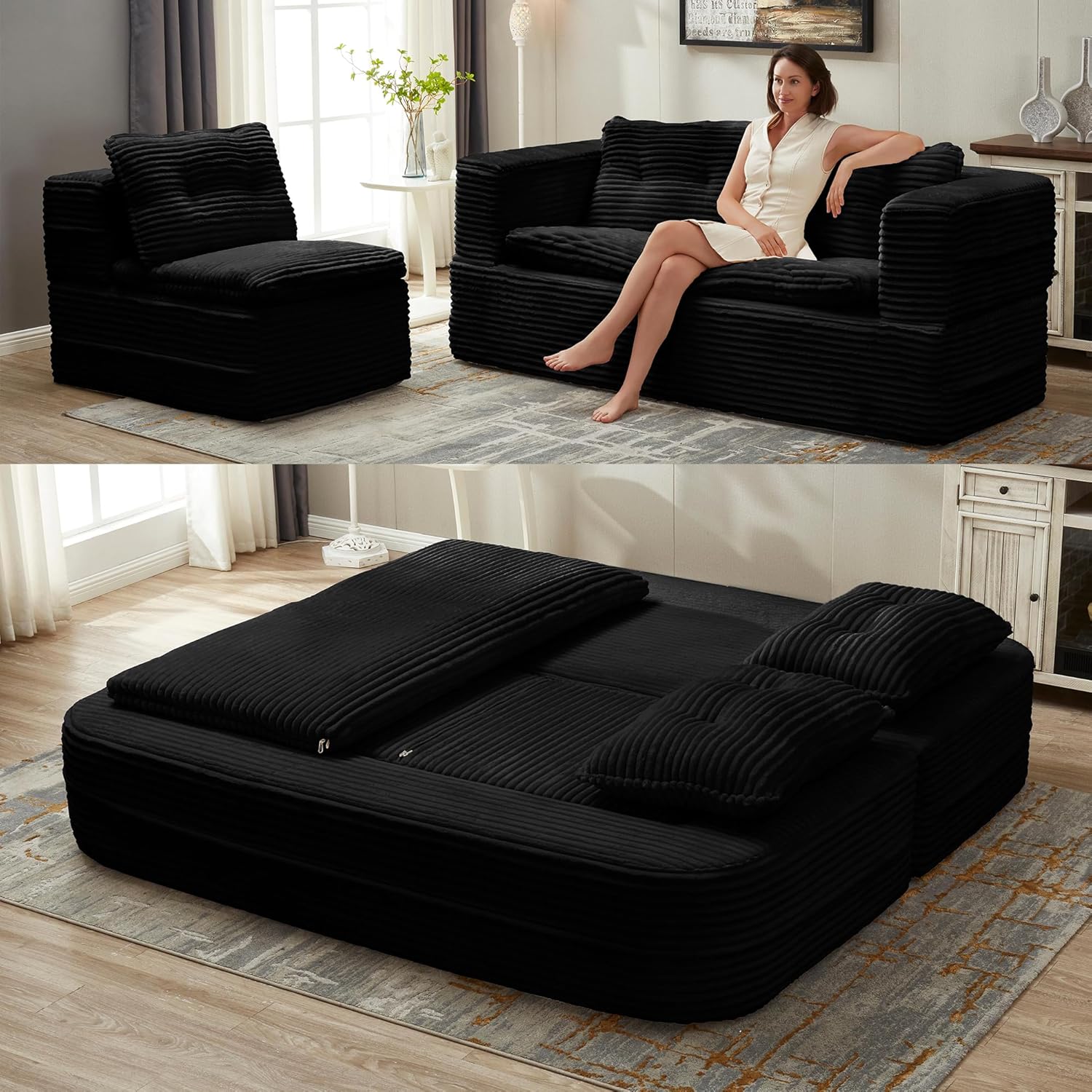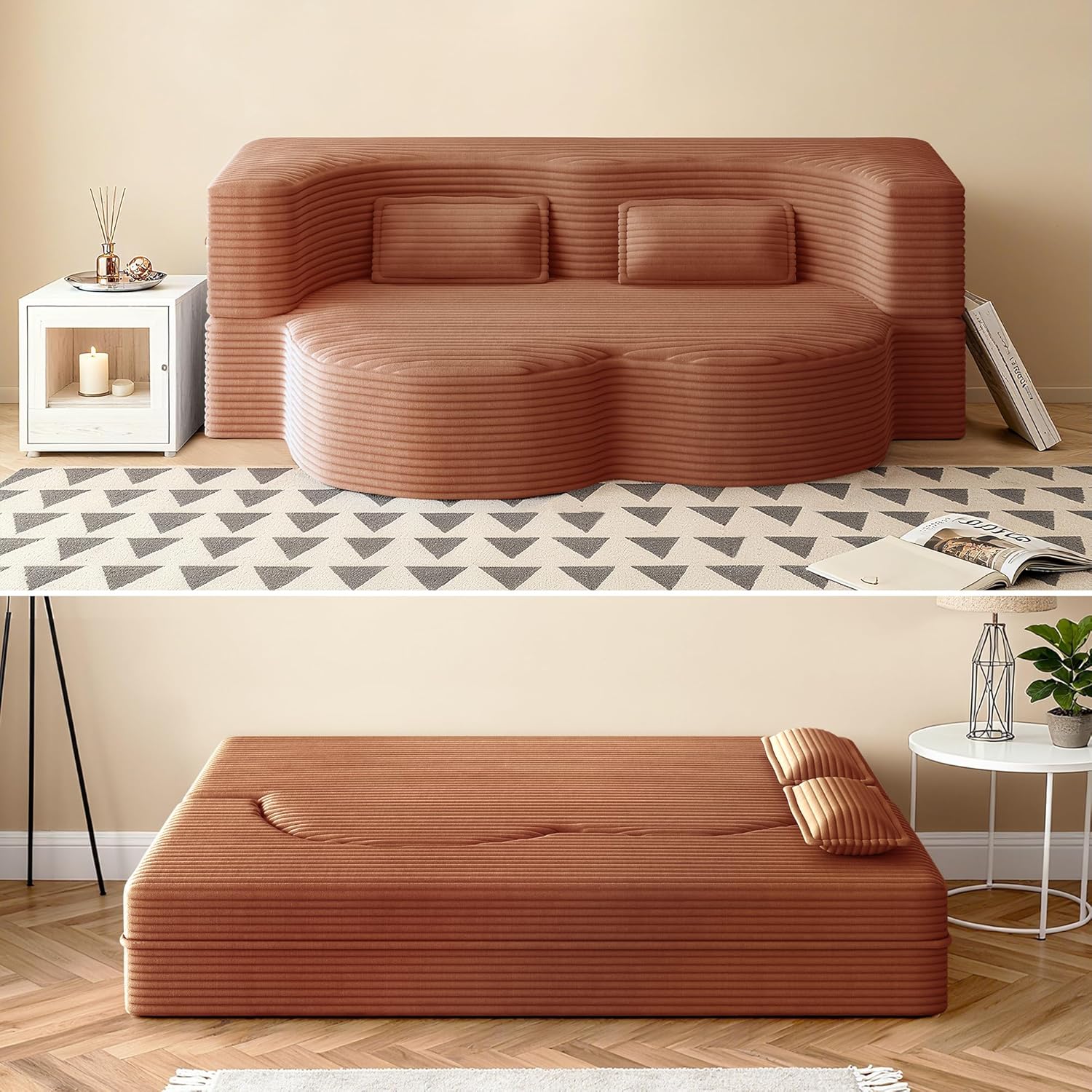 Where Comfort Meets Clever Design This 2-in-1 convertible sofa bed combines luxurious corduroy comfort with smart functionality, offering a practical and stylish solution for small apartments, guest rooms, or cozy living spaces. Its innovative design adapts to your needs without compromising on style or comfort. Why You’ll Love It✅ Easy Transformation • Lay-flat backrest converts sofa to bed effortlessly • 51.2" deep sleeping surface accommodates one adult comfortably ✅ Premium Materials • High-density foam retains shape after prolonged use • Reinforced seams prevent edge collapse ✅ Thoughtful Design • Tufted backrests keep filling evenly distributed • 2 included pillows enhance lower back support ✅ Space-Smart Dimensions • Sofa mode: 78.7"L × 41.73"W × 36.6"H • Folds flat for compact storage when not in use ✅ Multi-Scene Versatility • Living room centerpiece for movie nights • Guest room sleeper for visitors • Studio apartment space-saver Perfect For• Small apartments needing multi-functional furniture • Guest rooms requiring occasional sleeping space • College dorms with limited square footage • Entertainment spaces for movie or game nights Technical SpecsMaterials: Corduroy fabric + high-resilience foamSofa Dimensions: 78.7"L × 41.73"W × 36.6"HBed Dimensions: 78.7"L × 51.2"W × 15"HWeight Capacity: 300 lbs per seatIncluded: 2 pillows + 1 convertible blanket