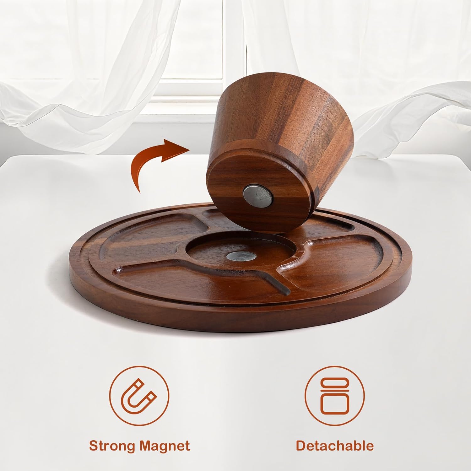 • 【Secure Magnetic Connection】 Innovative magnetic base design firmly locks the tray to the stand, ensuring stability when serving or carrying, giving you peace of mind at any gathering.