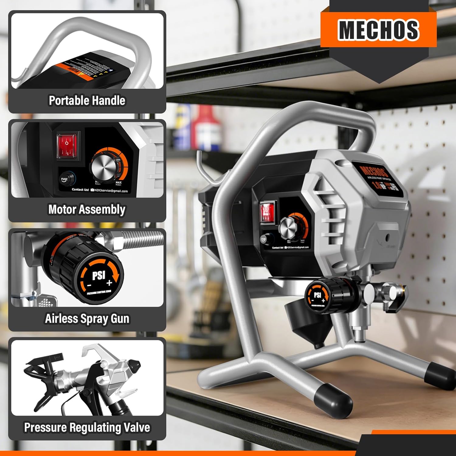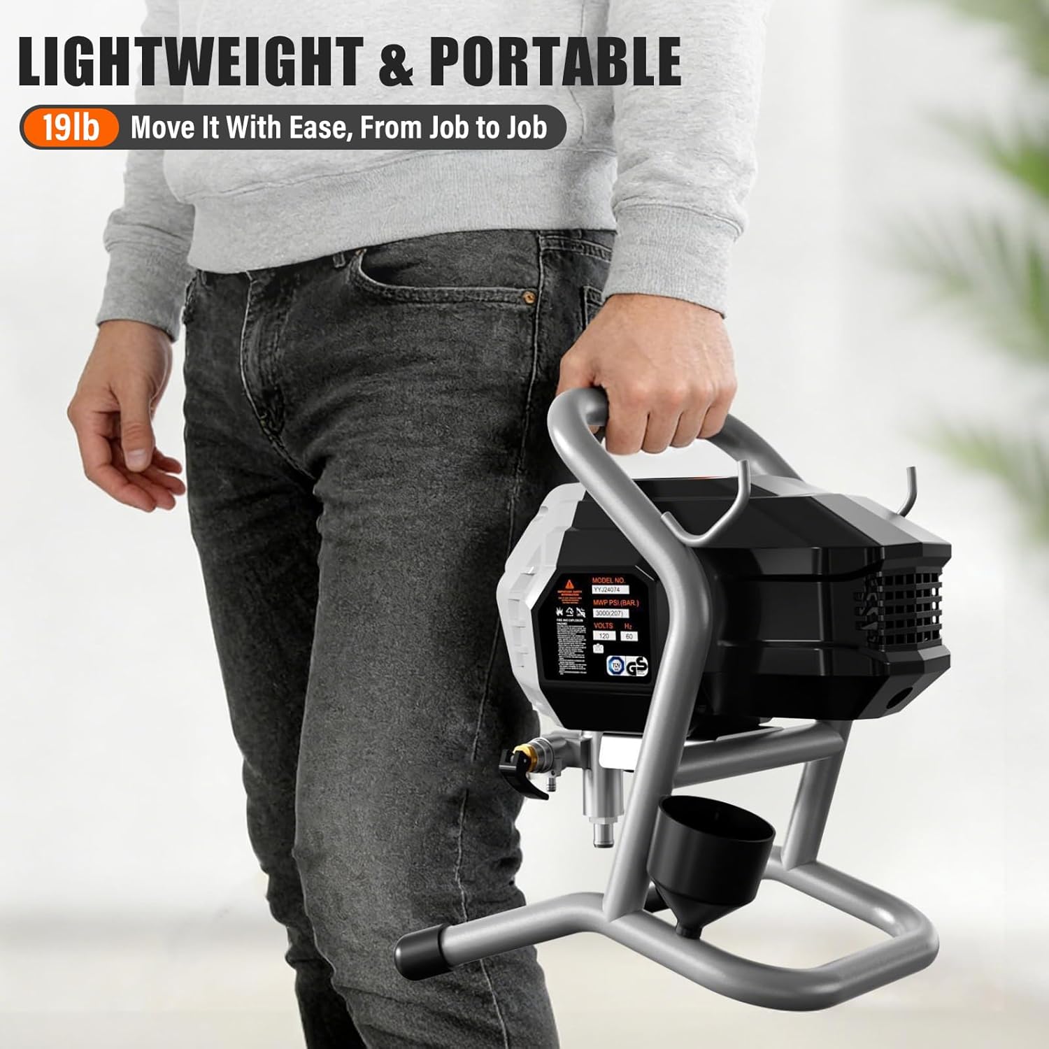 Airless Paint Sprayer - High Efficiency Thinning-Free Electric Spray Gun with Brass Nozzles & Extension Rod, Minimal Overspray for Home Interior/Exterior