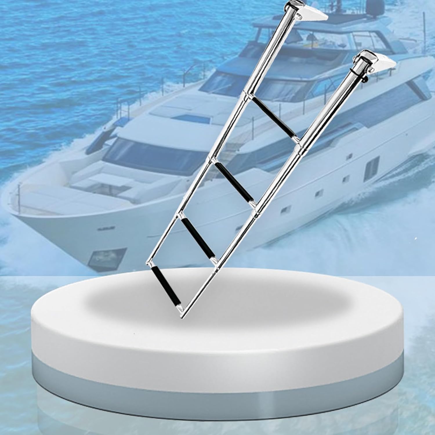 Anti Slip Boarding Ladder Telescopic Construction 4 Sections Stainless Steel Materials Quick Assembly Fishing and Diving Features: This premium stainless steel marine ladder boasts exceptionals resistance, ideal for saltwater environments to make sure long term durability and on boats Featuring a four section telescopic design, it easily adjusts to various heights and includes not slip treads for secure footing during boarding or swimming activities Designed for families, seniors, and water sports enthusiasts, this ladder provides access for users of all ages in marine settings Ideal for boarding yachts, fishing boats, or as a swim platform, it supports up to 250kg for versatile use in leisure and professional water adventures With quick, tool installation in under 2 minutes, this telescopic ladder enhances convenience and for any boating or excursions Specifications: Product name: Four-section handrailless boat telescopic ladder Product materials: stainless steel Product size: as shown in the picture Package Includes: Four section telescopic ladder Note: Before using the accessory, please check if it is compatible Pay attention to the storage methods