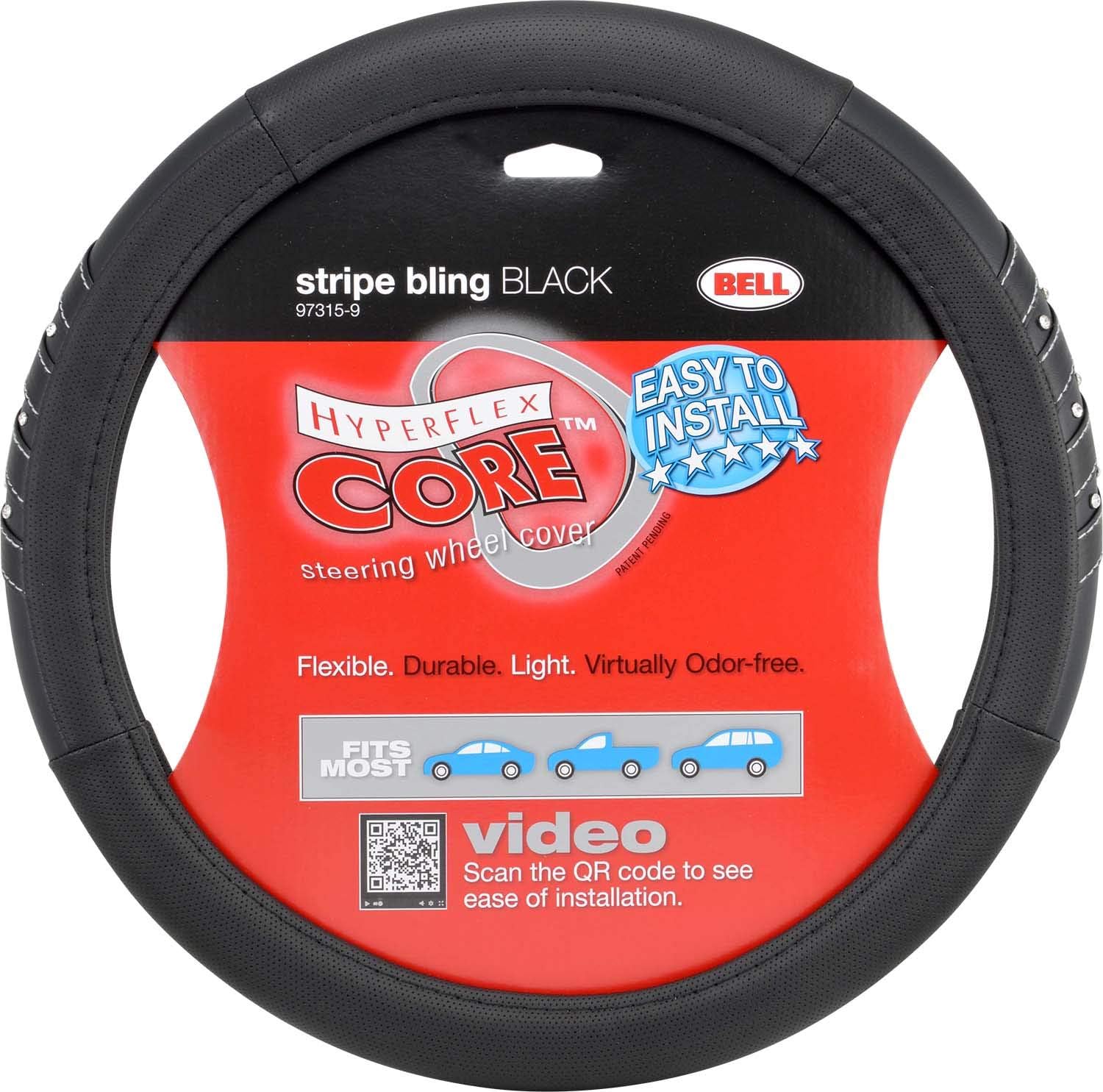 Bell Automotive's Stripe Bling Hyper-Flex Core Steering Wheel Cover is designed with a revolutionary inner core that allows for unprecedented flexibility while maximizing durability. Unlike the average rubber ring steering wheel cover, the patented cutting-edge Hyper-Flex Core technology that is exclusive to Bell Automotive allows for a lightweight constructed steering wheel cover that easily installs to most standard steering wheels in just minutes, while creating a virtually odor-free driving experience. Along with protecting your hands from hot or cold steering wheels, the design offers exceptional driving comfort. From their iconic racing helmets to emergency kits or interior accessories all Bell Automotive products are synonymous with safety and style.