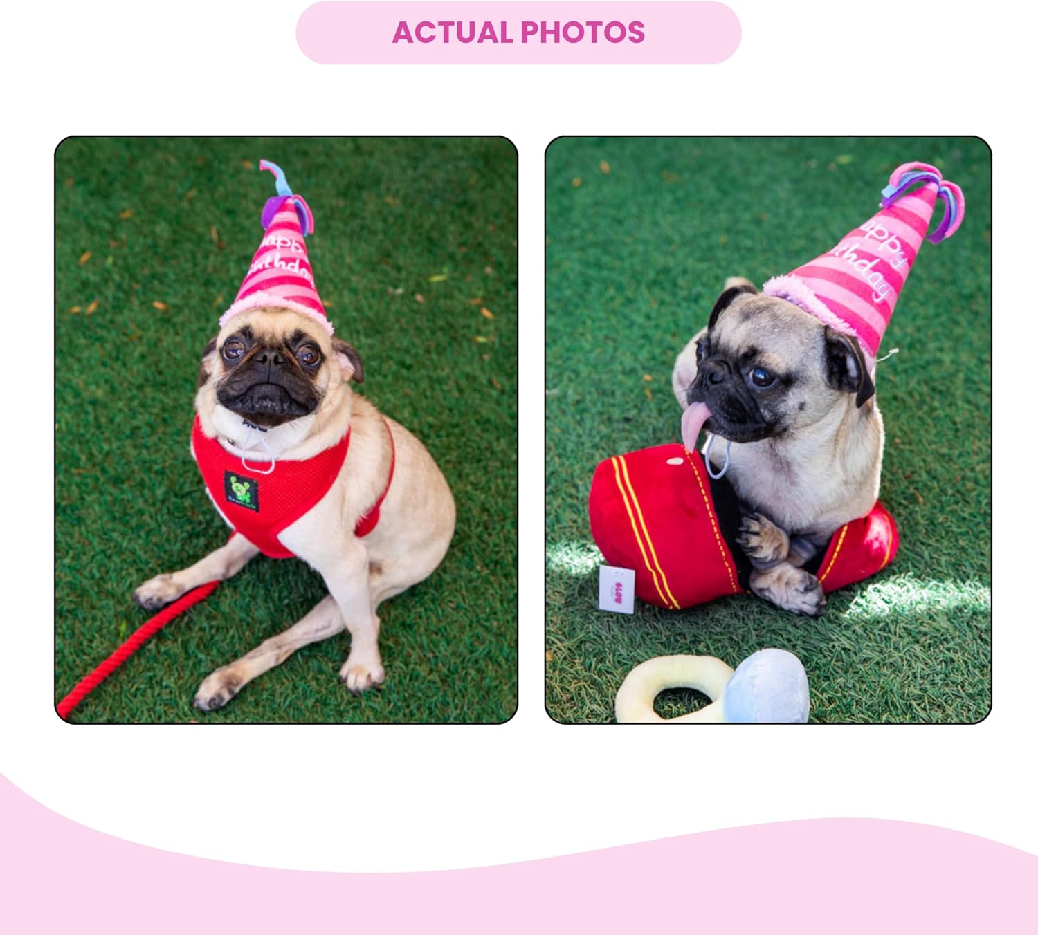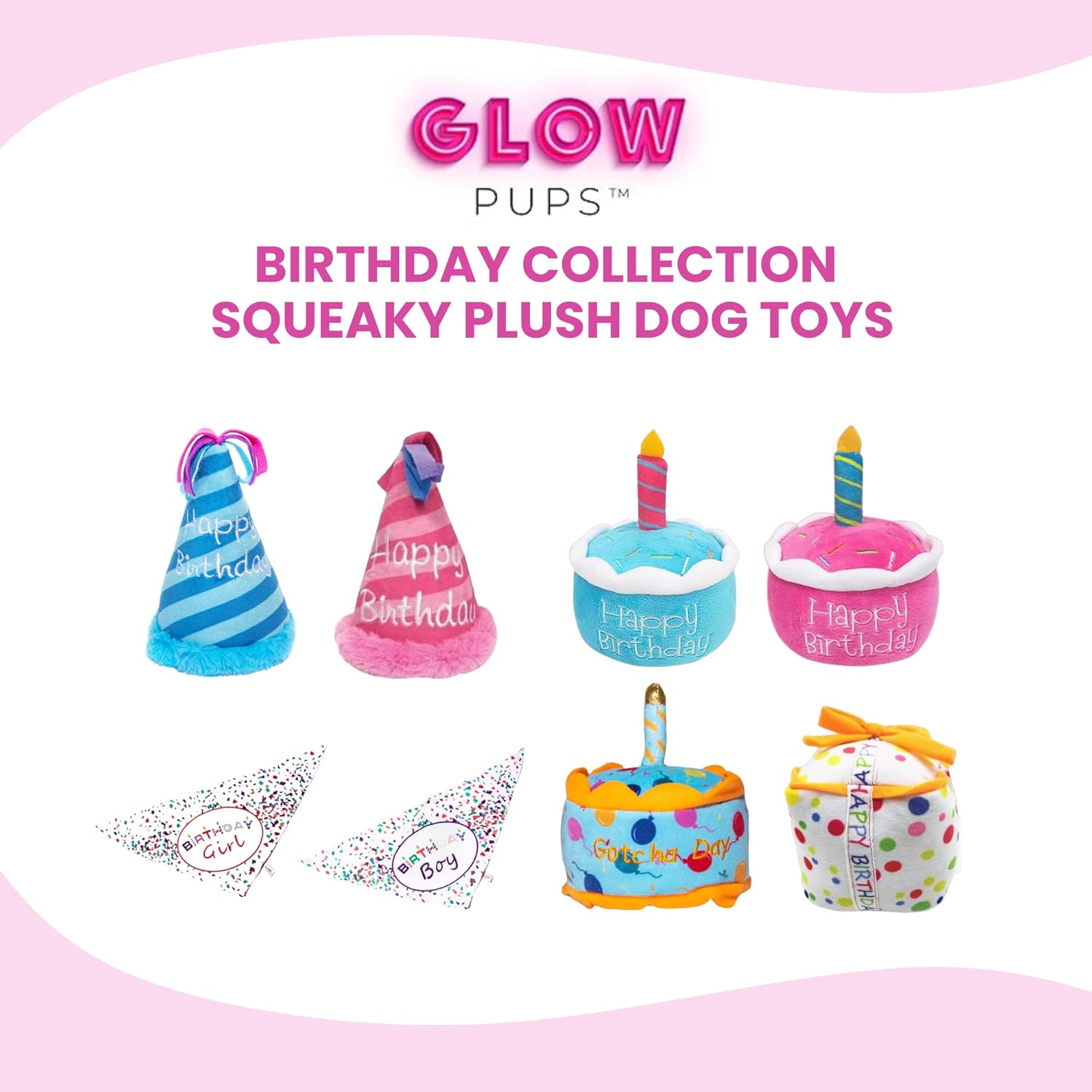 Make your pup the star of the celebration with this adorable Dog Birthday Girl Bundle. Featuring a soft plush birthday cake toy, a fun striped party hat toy, and a colorful confetti “Birthday Girl” bandana, this set has everything you need to throw the perfect dog birthday party. Each toy includes a built-in squeaker to keep tails wagging and playtime exciting, while the cozy plush material is gentle on teeth and gums. The festive bandana adds the perfect finishing touch for party photos, special memories, and Instagram-worthy moments. Whether you’re planning a birthday bash or simply spoiling your best friend, this playful bundle delivers fun, comfort, and celebration all in one gift set. Celebrate big. Play hard. Make memories
