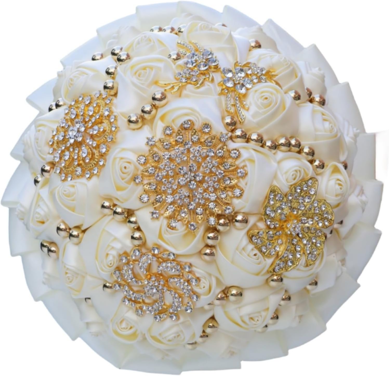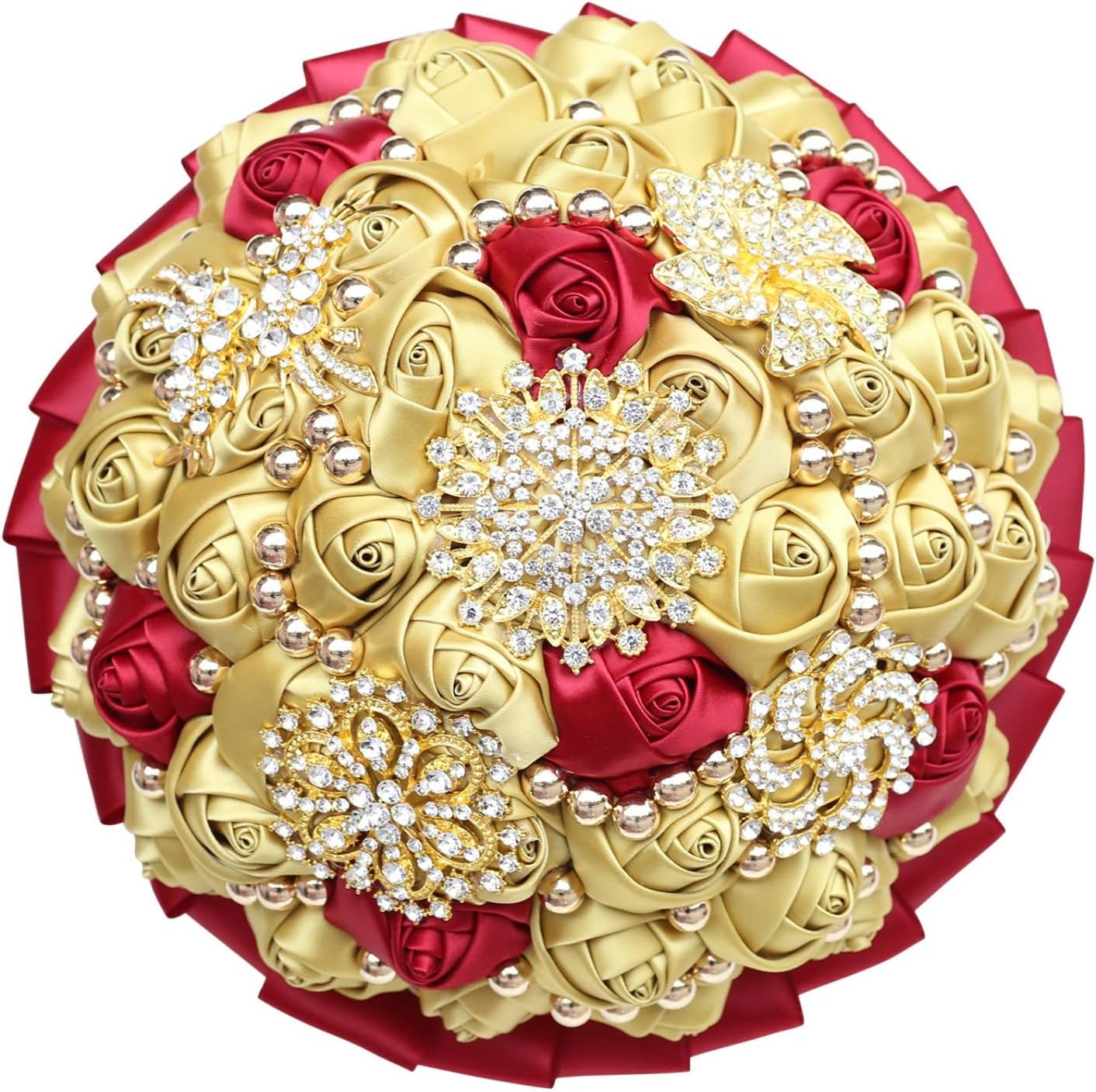 Gkvszy luxury wedding bouquet is exquisitely handmade by satin roses, rhinestones, and pearls, from top to handle, dedicate all these details to sparkle and elegance for your occasion.This handmade elegant bouquet is perfect as bridal bouquet, bridesmaids bouquet for wedding, bridal shower, quinceanera party, photo studio, prom, anniversary, etc..NOTE: Satin flowers are made of fabric, might be squeezed a little bit during shipping. Please sort the buds to help recover the shape.Please just feel free to contact us if there is any problem, we will respond within 24 hours and give you a satisfactory solution.