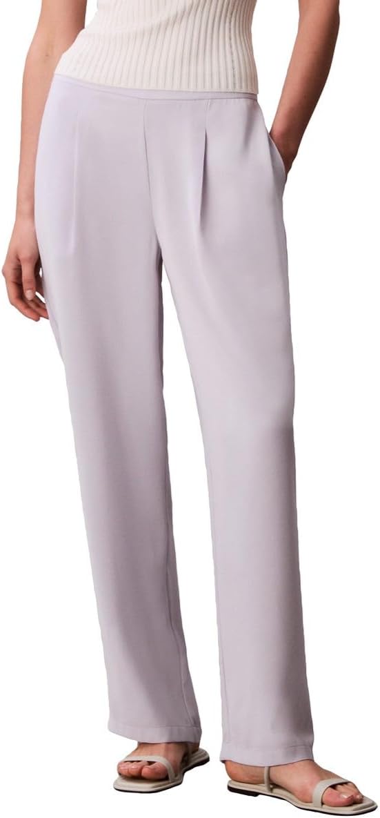 Crafted from fine crepe, this solid trouser is designed with a wide leg fit. Finished with an elastic back waistband and subtle pleating for a sophisticated pull-on style.
