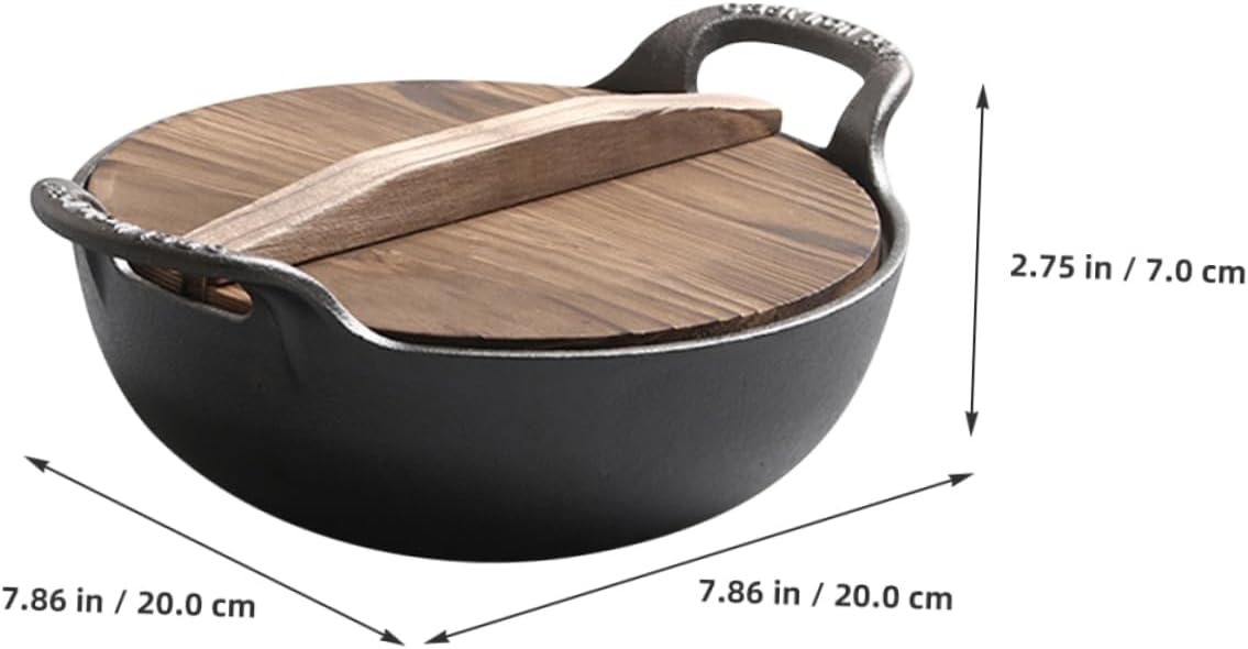 Package Include 1 x Cast with Lid Features -Material:Iron cauldron cast iron - Size: 20.00X20.00X7.00cm/7.86X7.86X2.75in cast iron pots - ColorBlack camp cookware - Safe and convenient to use, not easy to break or deform, reusable and can be applied longtime cooking wok. - Temperature resistant, thick material, durable, you don't have to worry about it being broken campfire pot. - This kind of stew pot can be used to stew soup, stew, stir-fry, cook hot pot and so on cast iron deep frying pan. - The design with side handle is picnics, camping, hiking and other outdoor activities skillet. - Convenient size, this pot is the suitable size for family meals or entertaining guests. oven safe skilletGoods Informationramen pan You can serve yourself like they do in restaurants! Simple structure design helps make it convenient to use.camp cookware This is a convenient cookware.camping cookware It is made of iron material, practical and lasting for you to use