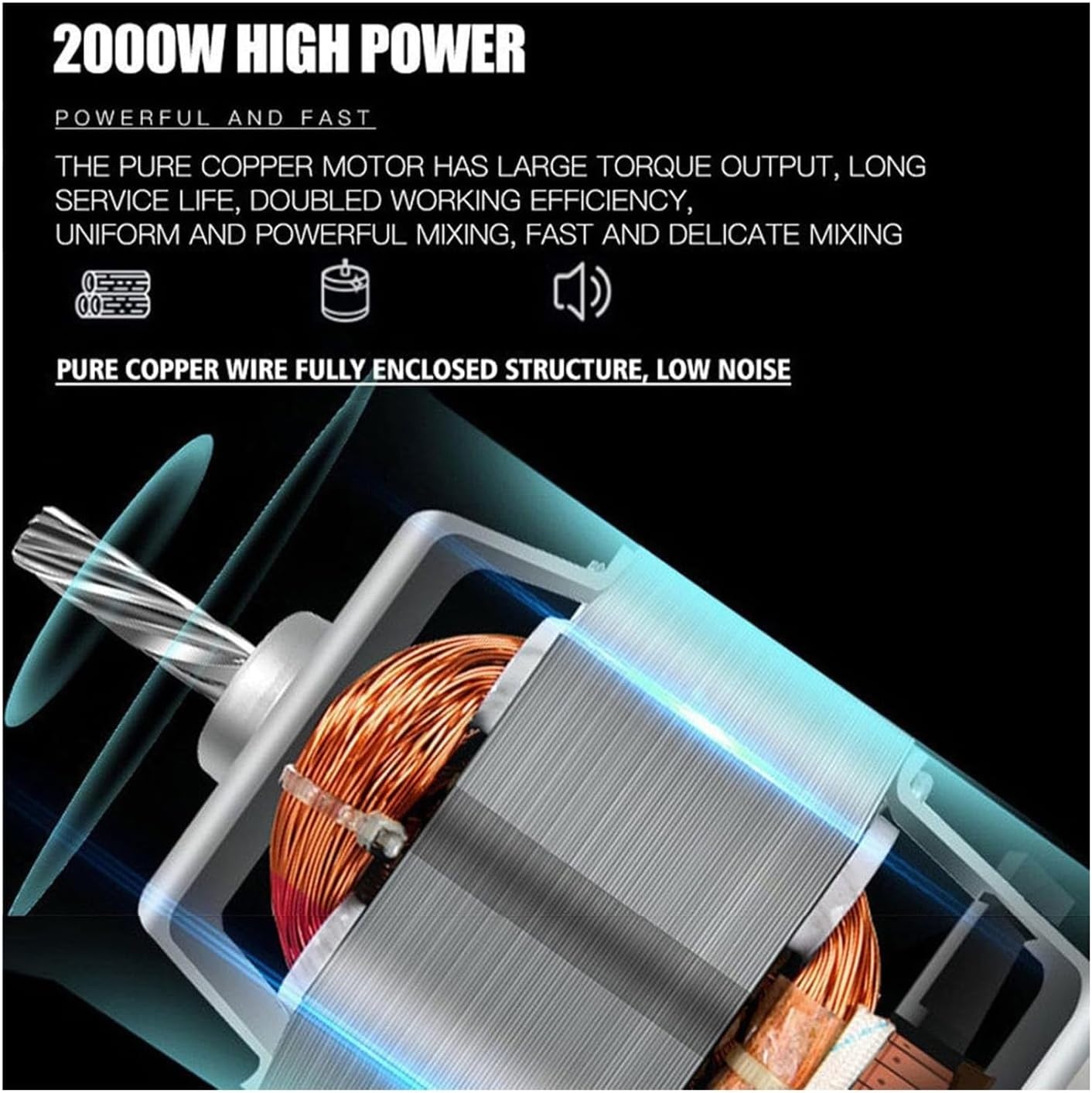 PACKING LIST:1*dough mixer1*aluminum alloy dough hook1*aluminum alloy mixer1*stainless steel egg beaterFEATURES-10L stainless steel pot with handle-8 gear + P gear rotary switch-transparent bowl cover-with release button-LED light ring-Plastic + Metal Gear-non-slip feetPRODUCT PARAMETERS:Name: dough mixerVoltage: 220-240V~50/60HzPower: 2000WCapacity: 10LMotor: 8840 all copper motorShell material: ABS plasticWeight:10.9KGBox gauge (L*W*H): 51.3*36.9*51.2CMNOTE:1. This product is measured manually, there is certain error, please refer to the actual size.2. This photo was taken under natural light. Please understand that there is a slight chromatic aberration between the device and the display.