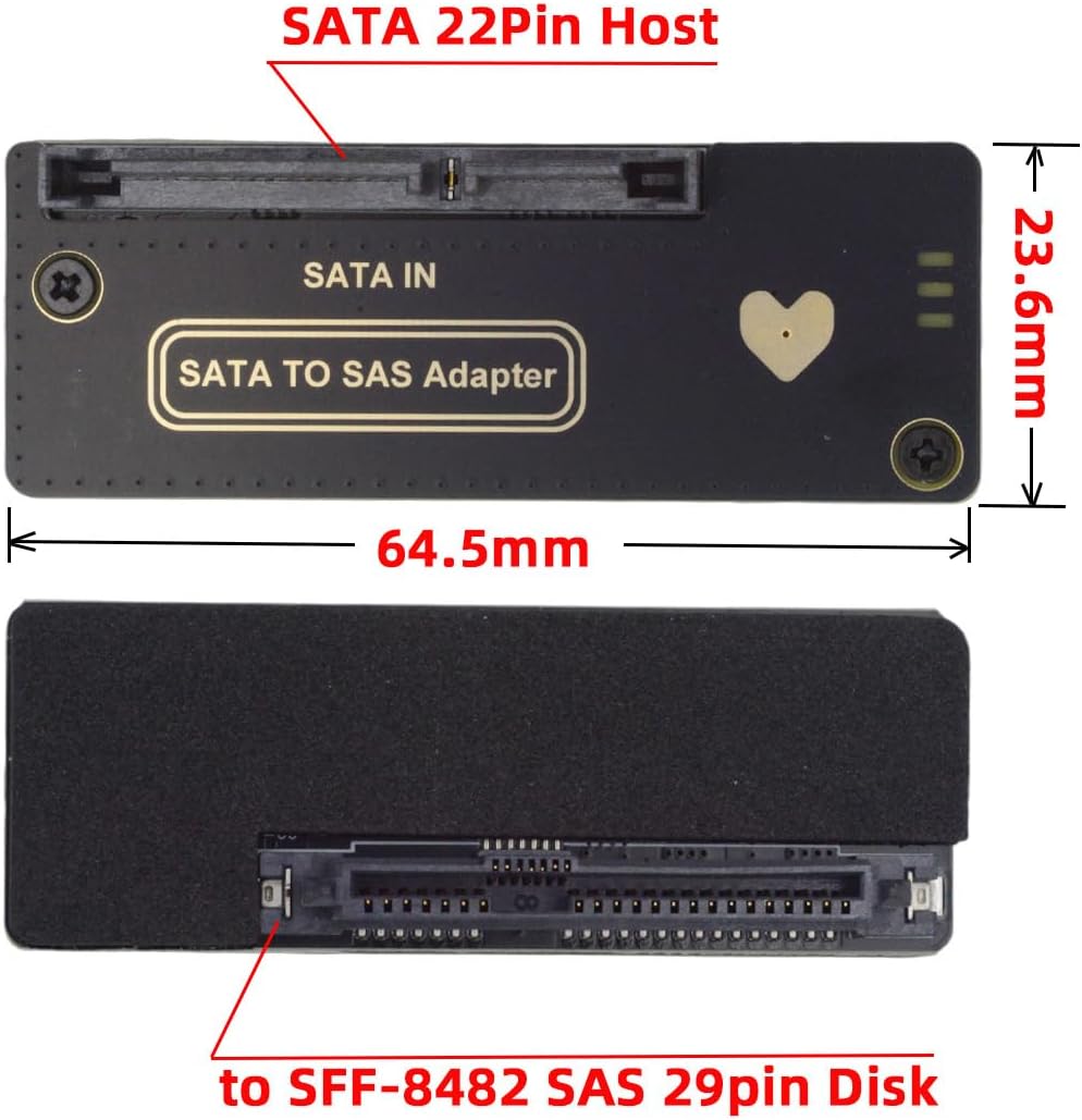 SFF-8482 SAS 29Pin to USB Hard Disk Drive Raid Adapter with Chipset and Power Port (Need 12V/3A Power Supply)The card need 12V/3A DC5.5*2.1mm plug Power Supply, The power supply not include in the package, You need to buy it separately if you have not it.This adapter has built-in chip, Can convert SAS disk to the USB interface of the common motherboard, so USB computers can also use the SAS disk and no need any SAS raid card.if your USB interface without SAS function, Connect our adapter, it can directly read/write SAS hard disk, support win7, win10, win11, lunix operating system.After conversion, the SMART of the SAS hard disk will display incomplete or no information, but it will not affect normal reading and writing.Supports transmission rates of SAS/SATA 6.0Gbps, 3.0Gbps, 1.5Gbps.Offers a throughput of up to 5Gbps when used with a USB 3.0 host and device,an 10x the capability of USB 2.0.Only SFF-8482 SAS hard disks are supported, and SFF-8639 U.2 hard disks are not supported.