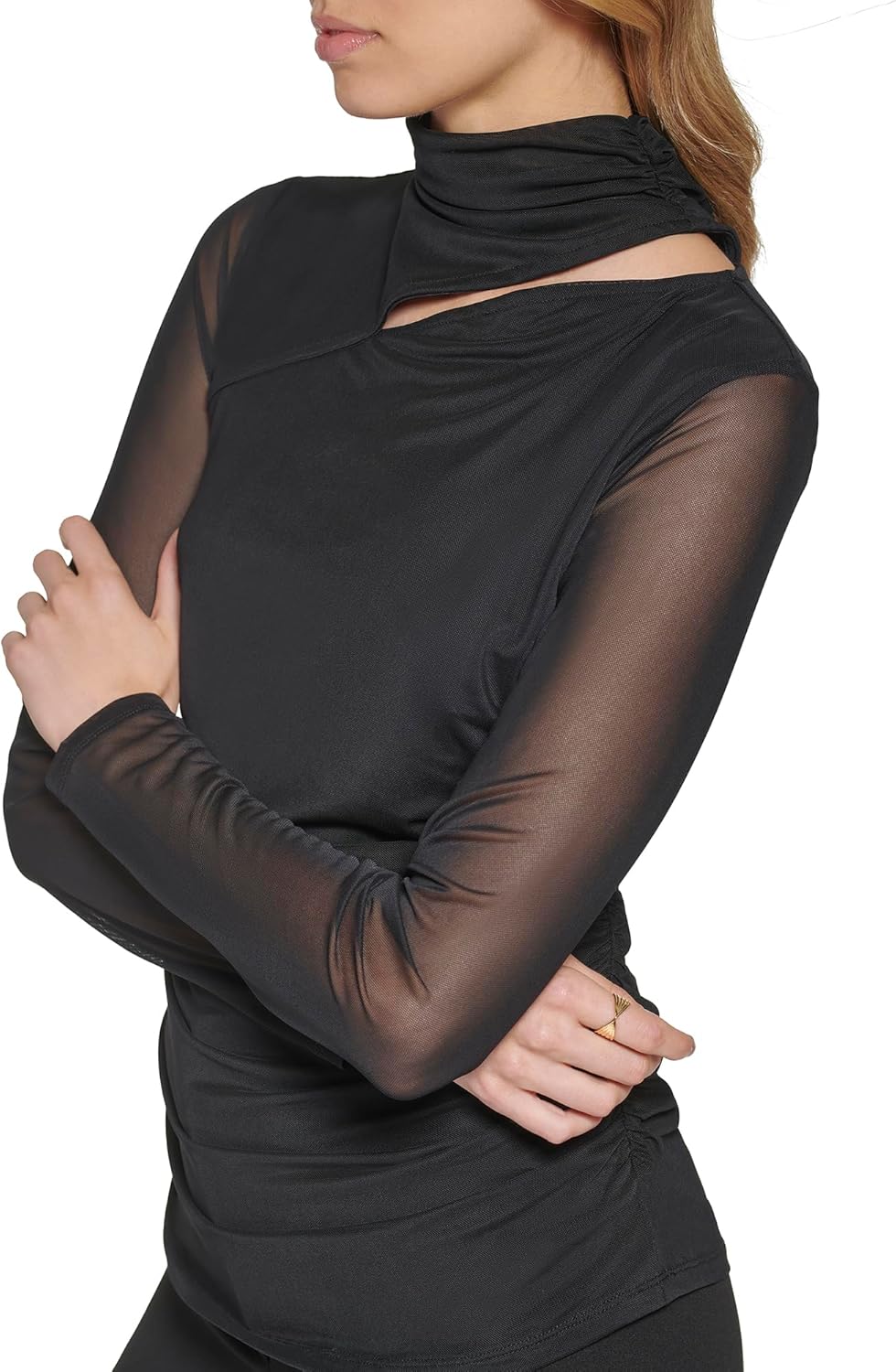 This Women's Sportswear KNIT TOP is a TURTLE NECK EVERYDAY ESSENTIAL CUTOUT DETAIL TOP