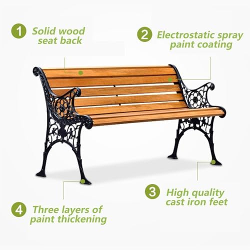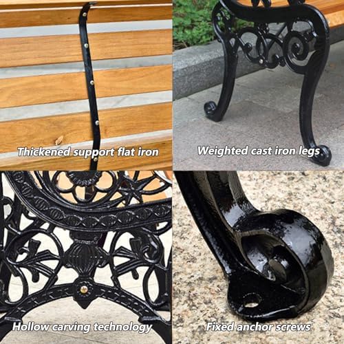 Transform your outdoor space with our elegantly designed Patio Outdoor Garden Bench. Featuring a distinctive armrest lion head design and slotted hollow details, this bench adds sophistication while ensuring durability. Available in two stylish colors, it seamlessly combines solid wood and robust metal construction, making it a versatile addition to any setting, whether in your garden, park, or patio. The thoughtful design includes supportive armrests and a backrest, providing a comfortable resting spot that helps alleviate fatigue during long periods of sitting. Crafted from high-quality solid wood, our bench is waterproof and moisture-proof, ensuring it withstands the elements and remains a staple in your outdoor oasis. The metal legs are treated with a triple-layer paint finish that resists rust, enhancing the bench's longevity. Ideal for various environments such as locker rooms, shopping malls, stadiums, and scenic spots, this bench caters to a wide range of use scenarios. Whether you're enjoying a peaceful moment in your courtyard or providing seating at a bus stop, it delivers both functionality and style. Assembly is straightforward, with all necessary accessories included, allowing you to enjoy your new bench in no time. Please note that minor measurement discrepancies may occur, and product colors may slightly vary due to lighting conditions. Some paint may chip during transport, but this does not affect the bench's functionality. Upgrade your outdoor seating experience with our stylish and durable bench today!