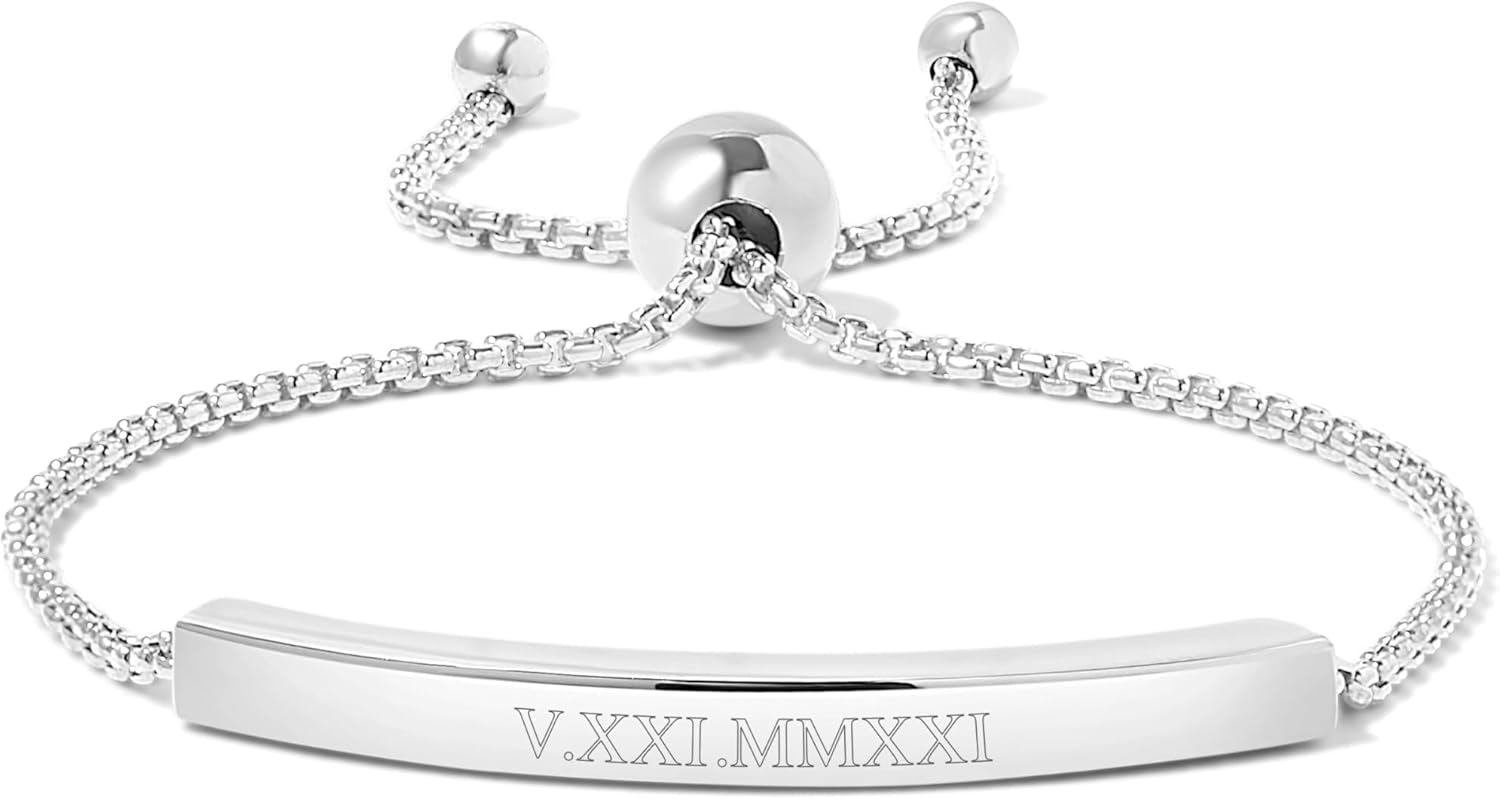 Roman numeral bolo bracelet from Eve's Addiction! A unique custom made roman numeral bracelet gift.