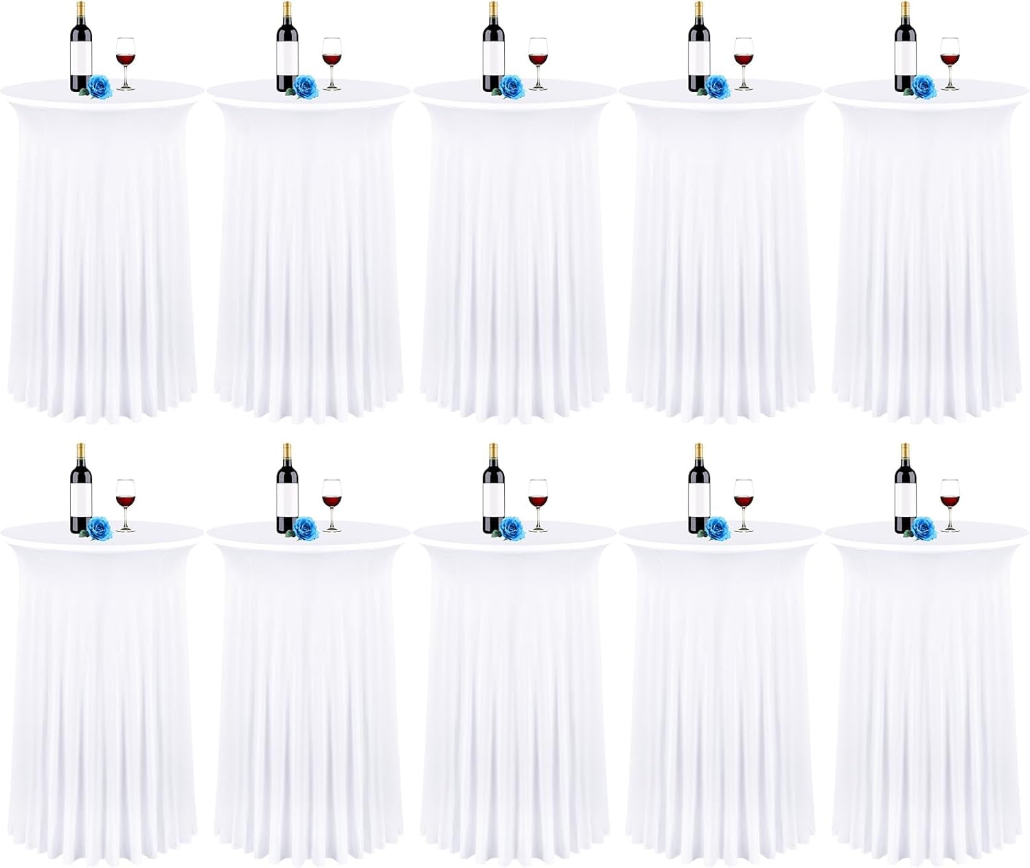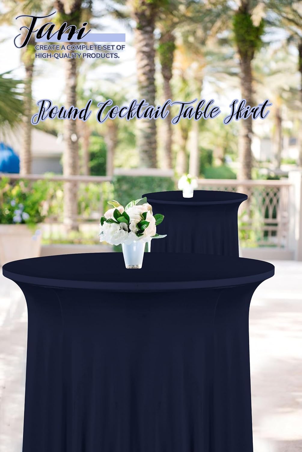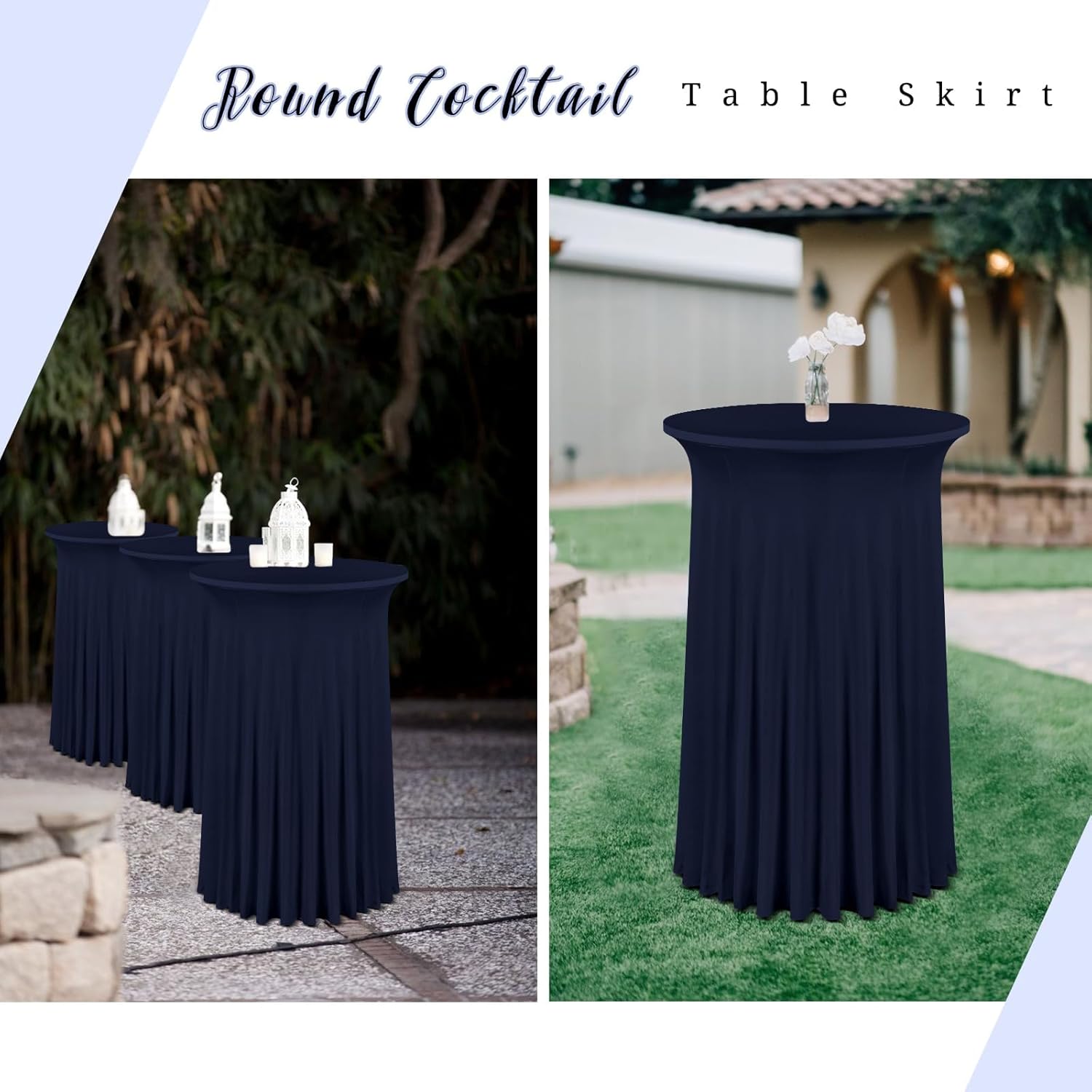 6 Packs 32"x 43" Round Cocktail Table Skirt,Spandex Stretch Cocktail Tablecloth with Wavy Drapes, Spandex Fitted High Top Table for Bar Party Banquet Wedding Birthday TableFeature: 1.It is fits to any 32 x 43 inch type of high round table2. It is a thick fabric spandex , very durable.It will not be so thin as to see the legs of the table inside.3. This high-stretch round table cover is made of 90% polyester and 10% spandex material with high stretch, durability and repeated usage.4. When you are finished using your table, you can also fold it without removing the tablecloth.5.They can protect your high-top table from dirt, dust and scratches, and keep the table clean, tidy and beautiful.6.The table cover can be used to cocktail tables, exemplify modern sophistication and luxurious elegance.7.The elastic band design makes the ductility of the table cover more improved and easier to remove and wash.Additional Information:* Shape: Round* Quantity:6 Pack cocktail table cover.* Size:32 x 43 inch* Wrinkle resistant: Seamless design.* Material: High-quality spandex.* Applicable scenarios: making them perfect for indoor and outdoor events such as weddings, parties, bars/pubs, trade shows, and special events.Note:1.Manual measurement, the size will have an error of 0.5-2mm,subject to actual size.2. Due to the light and screen difference, the item's color may be slightly different from the pictures.3. Before buying, please confirm that the size of your table is consistent with the use of our products.