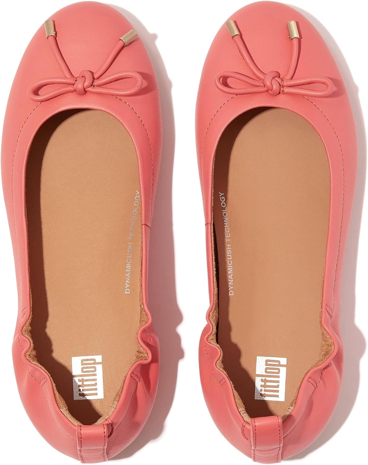These ballet flats will have you in a whirl. Looking like classic ballet flats but feeling like sneakers – you’ll wonder just where FitFlop fit their comfort tech. Think genius design: sleek featherlight midsoles, anatomically contoured to support your feet, with FitFlop's Dynamicush technology hidden in the forefoot for all-day high-rebound cushioning. This version, in butter-soft leather, features a pretty leather bow with shiny metal tips. An elasticated top line gives a foot-hugging fit.