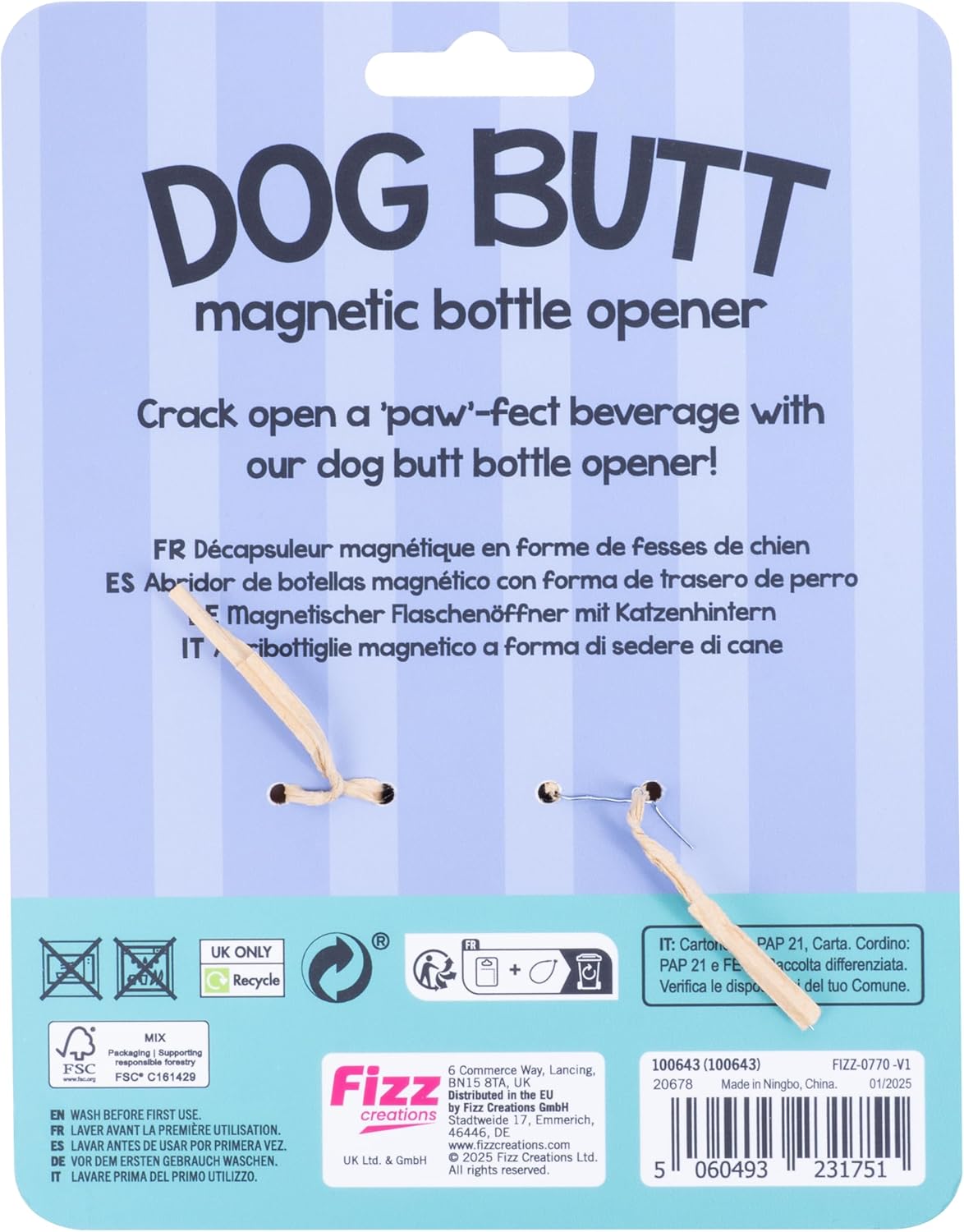 Pop your bottles with a dash of paw-sitivity and a wagging sense of humour with the Dog Butt Bottle Opener! Designed to resemble a dog’s playful backside, this quirky bottle opener is a fun addition to your kitchen or bar setup.