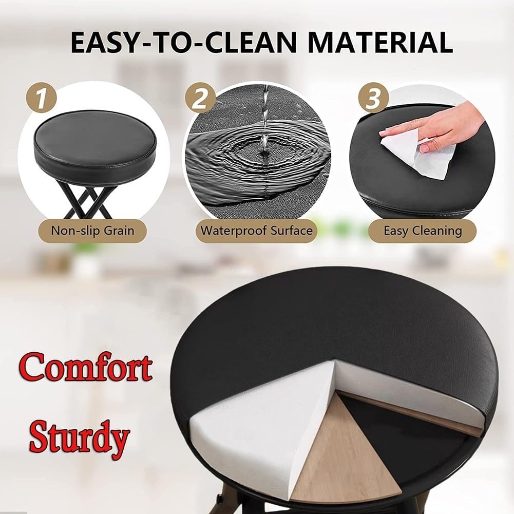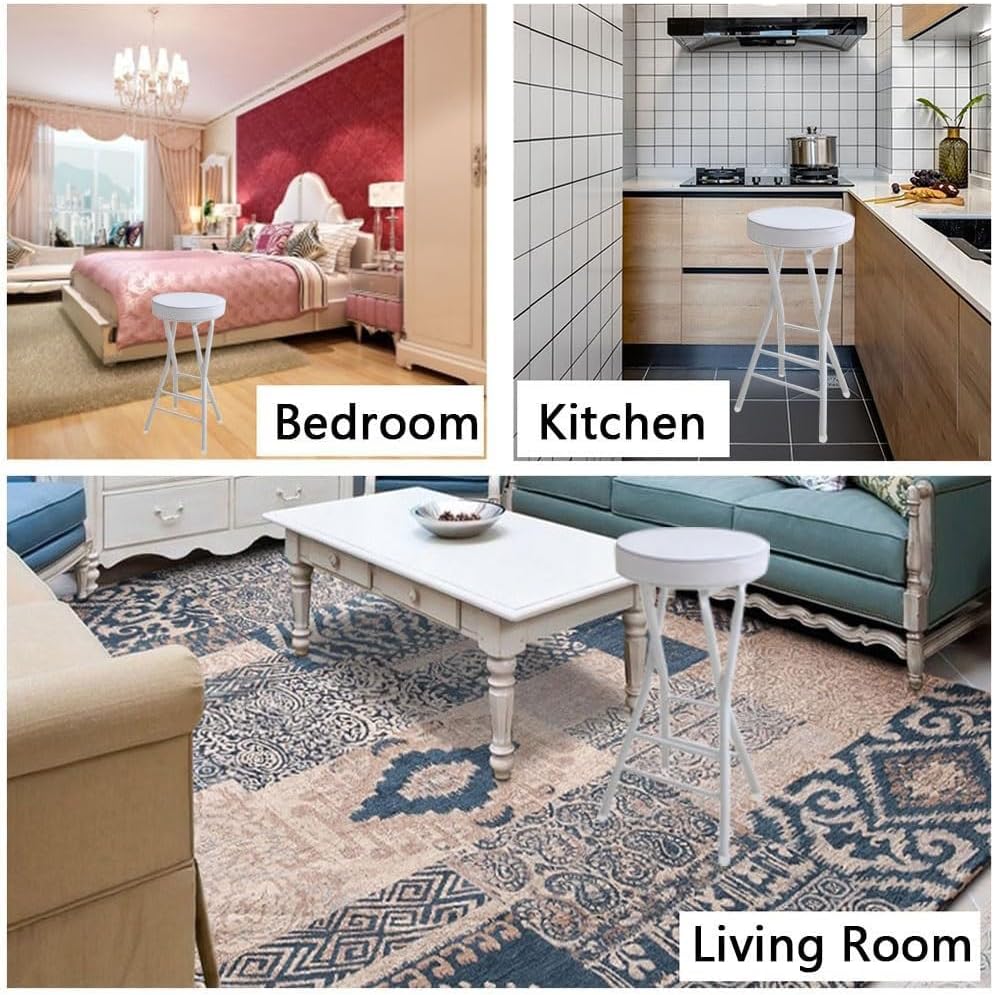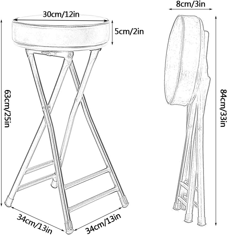 If you are looking for high quality, sturdy and durable folding stools, these commercial grade bar stools are definitely for you.You can place them at your kitchen table, study, bedroom or garden.The stools can easily fit into the trunk of your car and are perfect for taking on outdoor adventures and picnics in the park.This folding bar stool will stand up to serious wear and tear and rough use and will last you a long time.Features:Easy to store, folding design saves space effectivelyNo assembly required, saves time and laborProduct Description:Seat height: 63cm/25inFloor space: 34 x 34cm/13 x 13inCushion Diameter: 30cm/12inCushion thickness: 5cm/2inFolded height: 84cm/33inFolding thickness: 8cm/3inPackage Includes: 1 x Folding StoolPlease note:1. Although we try to display the most accurate color, the color may vary due to different computer monitors. 2. 2.2. Manual measurement, product size will have 1-3 cm error.