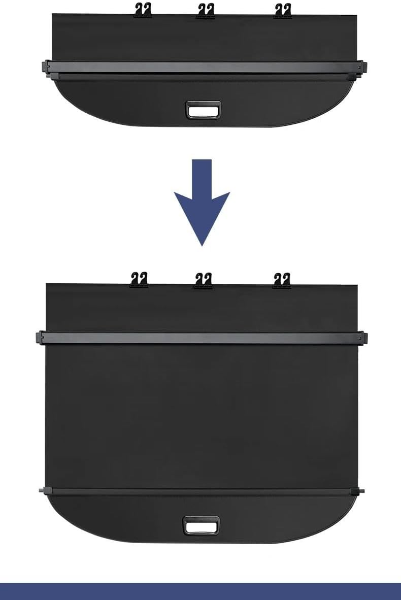 "Features:1. Made of Canvas material more durable.2. The shade curtain is fixed on the trunk easy to install .divides the trunk into two layers which is convenient for storing goods to maximize the use of space to protect your goods from peeping so that your car will not be so crowded 3.Complete goods protection. You can effectively shield the goods in the trunk better protect personal privacy and prevent theft. When you want to put high items you can also easily disassemble and install them.It can be stretched freely.When you use them you just need to pull them up. When you don't use them you can put them in. 4.Fully retractable like a window shade for easy use and removal.Specification:1.Placement on Vehicle: Cargo/Trunk Rear 2.Type: Cargo Cover3.Color: BlackPacking Includes:1 x Luggage CurtainRetractable rear trunk parcel shelf made of thickened aluminium alloy and high-density canvas, the shield shade possess strong load-bearing capacity and stress resistance.Conceals your belongings from view with this durable boot cover, offering peace of mind and added theft deterrence.