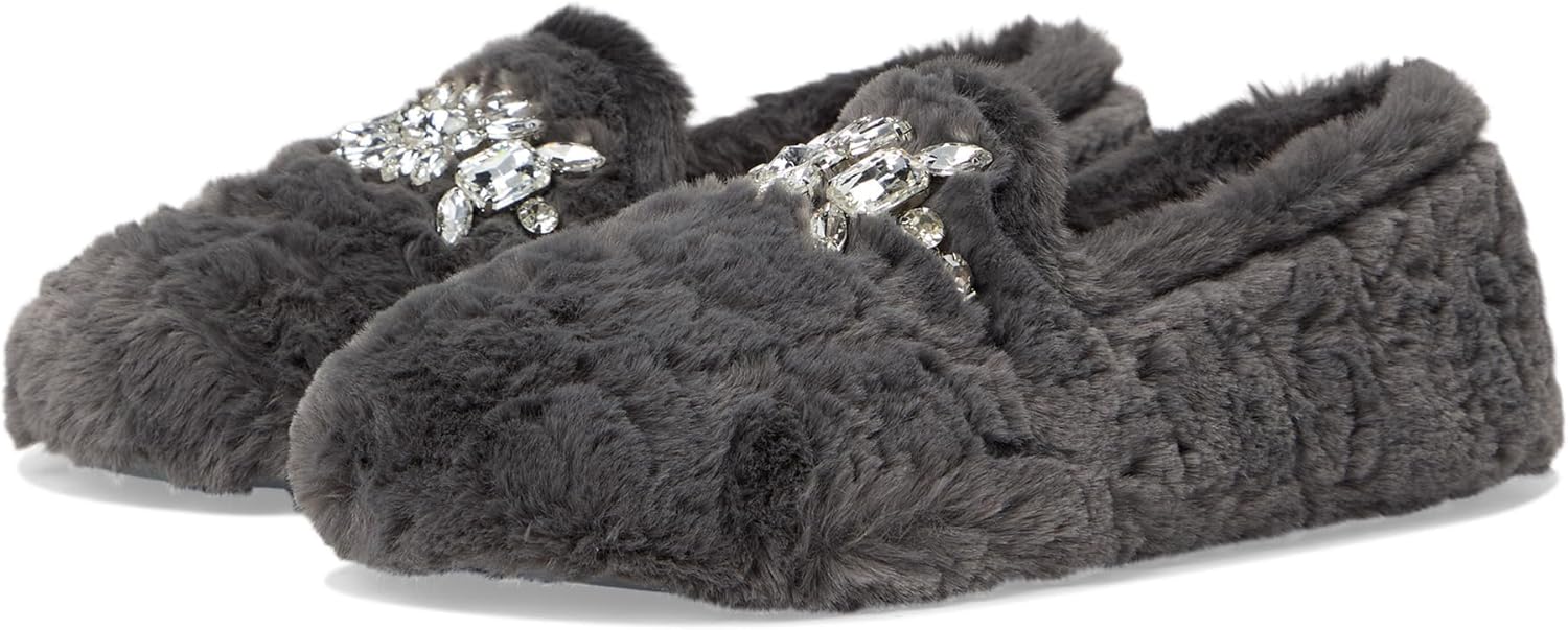 Lounge in luxury with these rhinestone-encrusted fuzzy loafer slippers. **Features:** Slip-on style, loafer design, faux fur uppers, round toe, removable and washable insock, rubber outsole, rhinestone details **Why We <3 It:** Pair with cozy knit socks and your favorite PJ set for a night-in moment. **Please Note:** Removable insocks can be washed and replaced to keep your feet fresh and shoes in tip-top condition for endless wear.