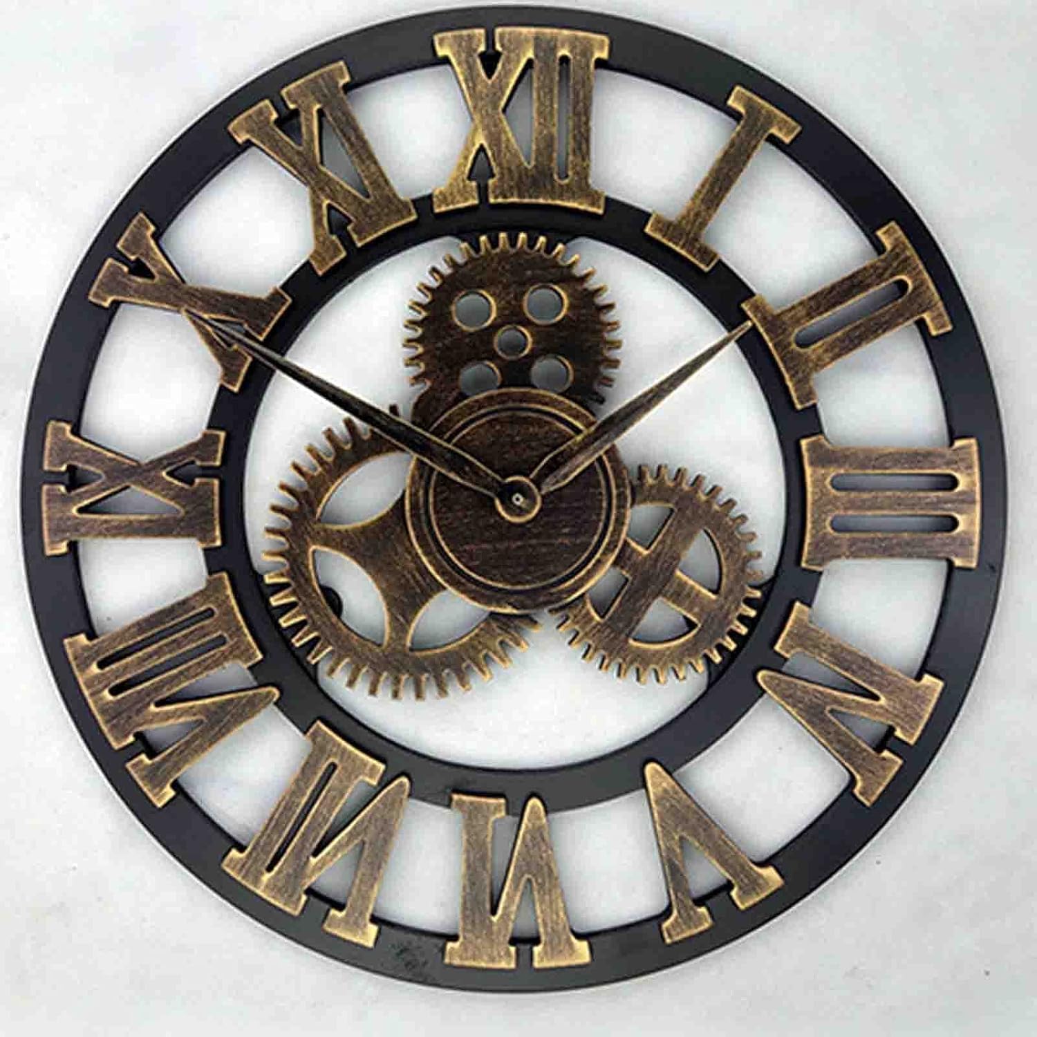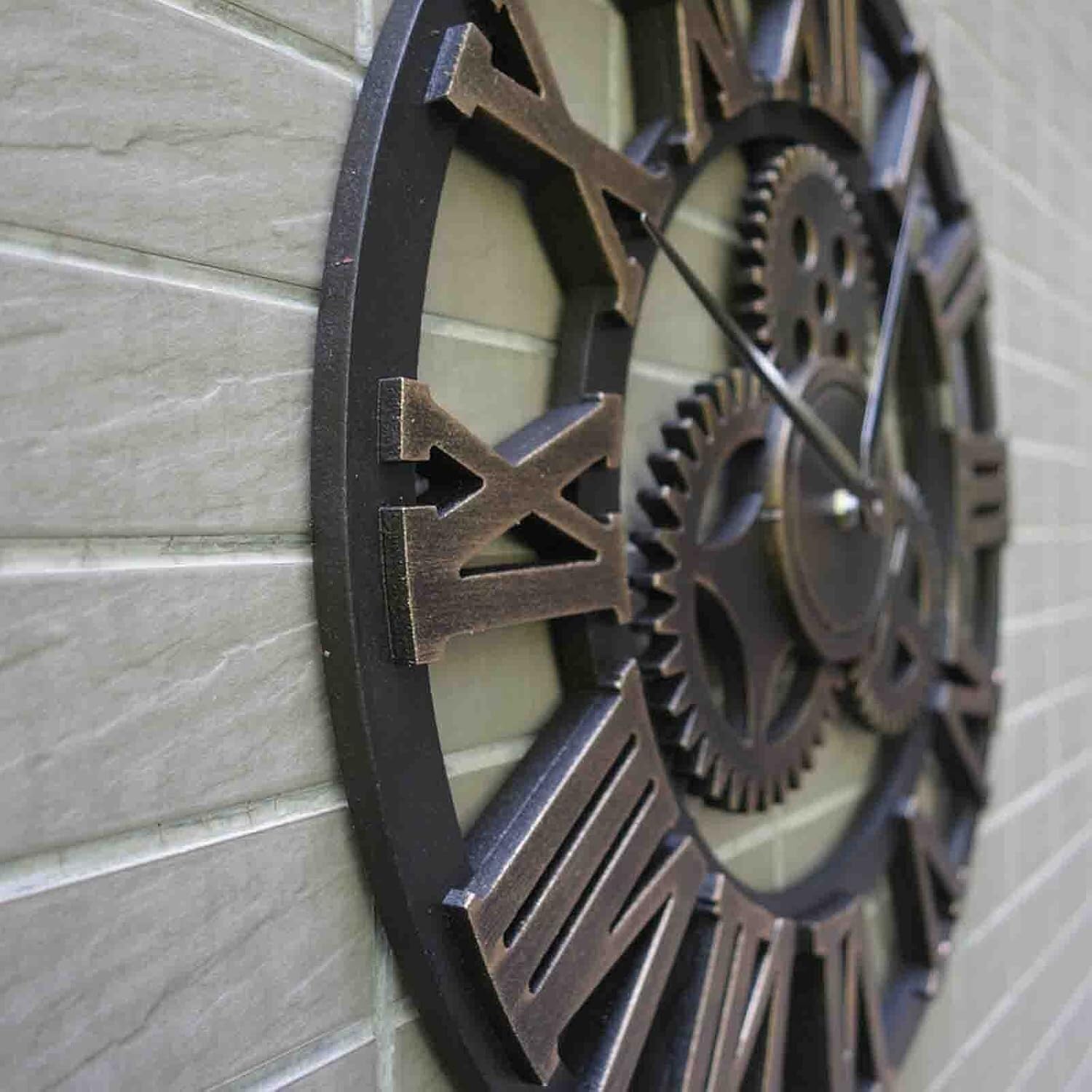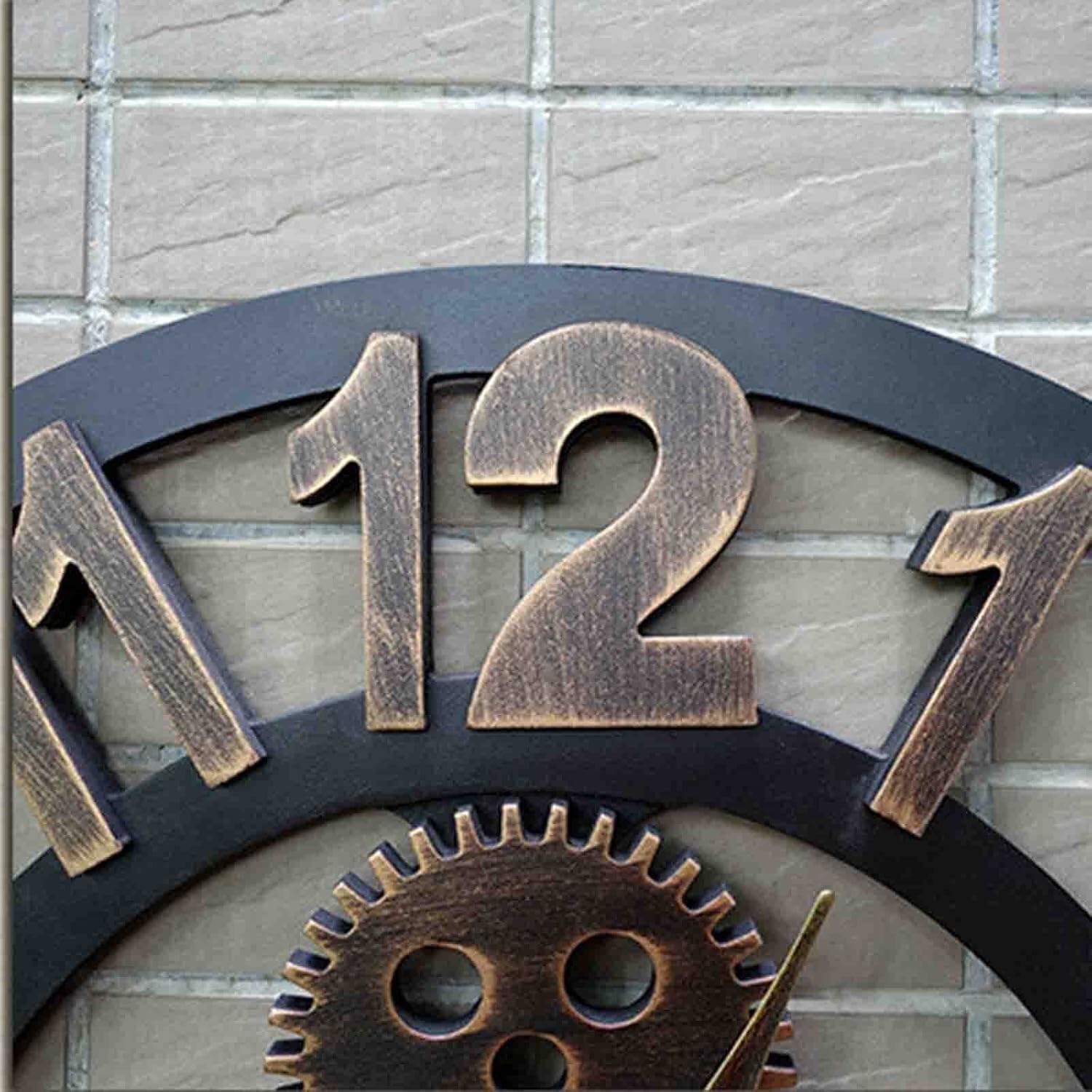 Large Wall Clock ,Retro Big Gear Wall Clocks with 3D Numerals for Living Room Restaurant Bar Cafe Decor,Battery Powered ClockDescription:【LARGE BUT LIGHTWEIGH'S WALL CLOCK】Using wood-mdf material,numerals with brushed metal texture,triangular hook on the back of the wall clock for easy hanging.【DECORATIVE WALL CLOCKS】Whether you are decorating at home or in public places,a retro large wall clock with industrial-style gears is a good choice for you.You can also give it as a gift to family or friends.【EASY TO READ】The three-dimensional numerals make it easy for you to read the time from a distance.Specification:Name: Retro wrought iron wall clockMain material: Wrought ironBattery powered: AA Battery (not included)Package:1 x Decoration Large Wall clockElevate your outdoor space with this stunning extra large garden wall clock. Crafted from decorative wrought iron, this clock boasts a bold steampunk design with intricate industrial gears and rustic metal numerals. The silent quartz movement ensures peace and quiet while the vintage distressed details give it a timeless charm. Perfect for gardens, patios, or any outdoor setting, this European-inspired wall clock brings both style and function to your space. Whether you're enhancing your garden decor or adding a vintage touch to your outdoor area, this clock is sure to impress.