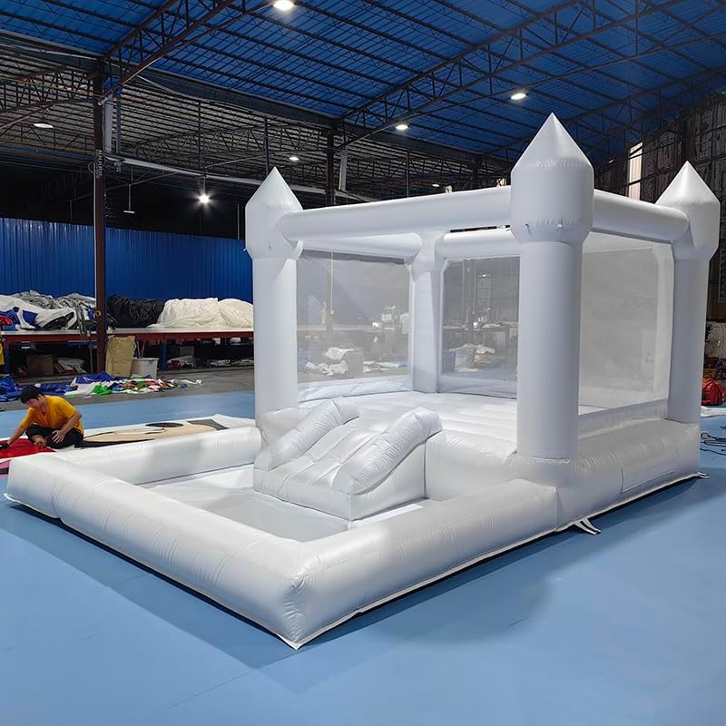 16.5FT Commercial PVC White Bounce House with Slide and Ball Pit Multifunctional Inflatable Bouncer for Kids(16.5x11.5x9.3ft ,with Air Blower)