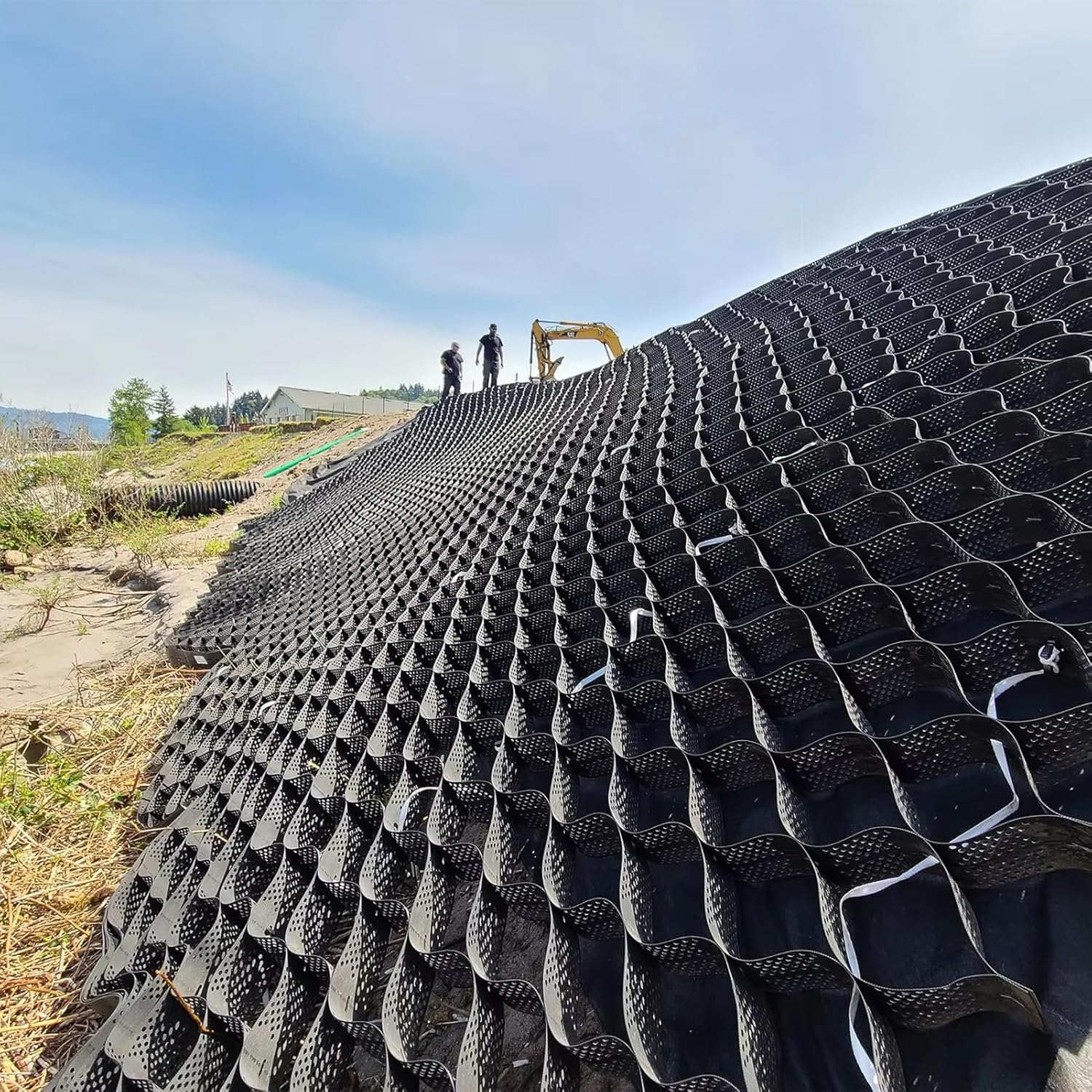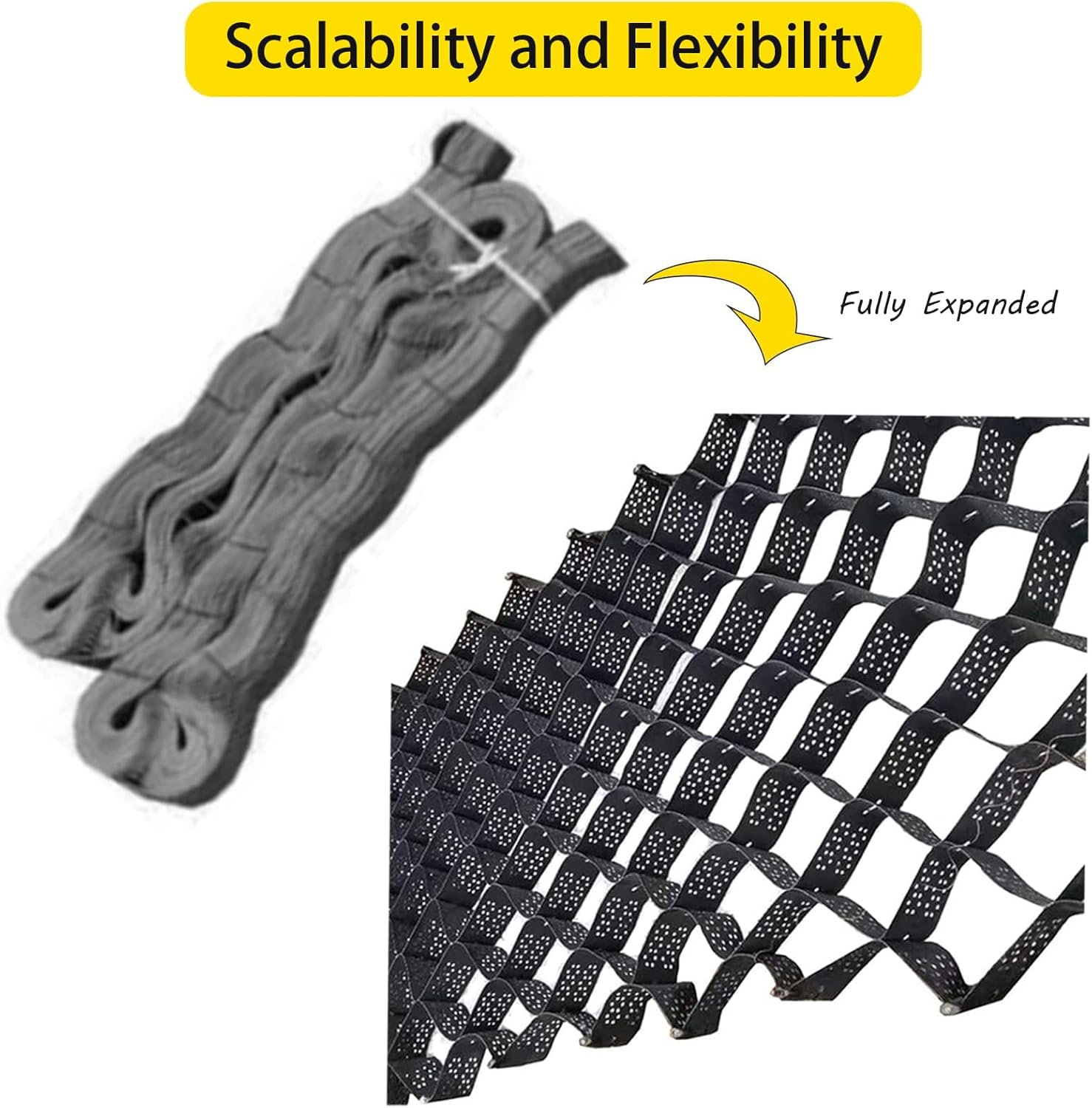 4" Thick Geocell Ground Grid, Geo Gravel Stabilizer Grid Driveway, Geo Grid Retainer System for Garden Landscape, Walkway, Parking Slope, 13000 LBS Per Sq Ft FEATURES: This ground stabilizer can be stretched into a mesh during construction and filled with loose materials such as soil, gravel, and concrete to form a structure, can effectively enhance the bearing capacity of the roadbed and disperse the load, allowing automobiles and light trucks to drive and be parked. HOW TO USE? Use reinforcement stakes or anchors to secure it to the ground. PRODUCT NAME: Gravel Grid PRODUCT MATERIAL: HDPE PRODUCT COLOR: Black PRODUCT LOAD-BEARING CAPACITY: 6000kg/13000lbs per square FT PRODUCT SIZE: Fully expanded cell grid area: 30×30 cm (11.8" × 11.8") PRODUCT HEIGHT: 10 cm (4 in) PACKAGE INCLUDE: 1 Set of Gravel Grids WARM TIPS: All dimensions are measured manually, there may be errors, please understand.