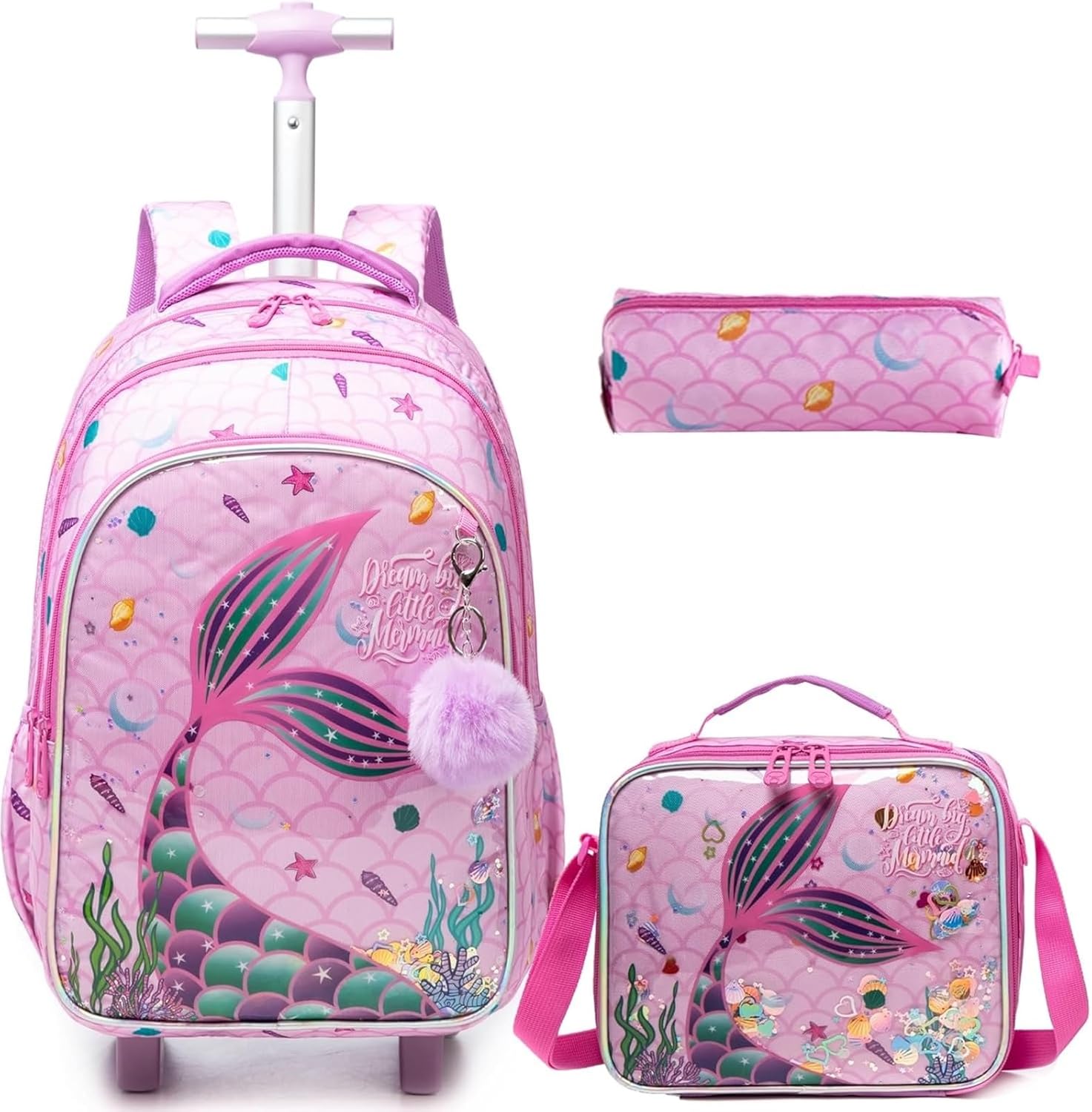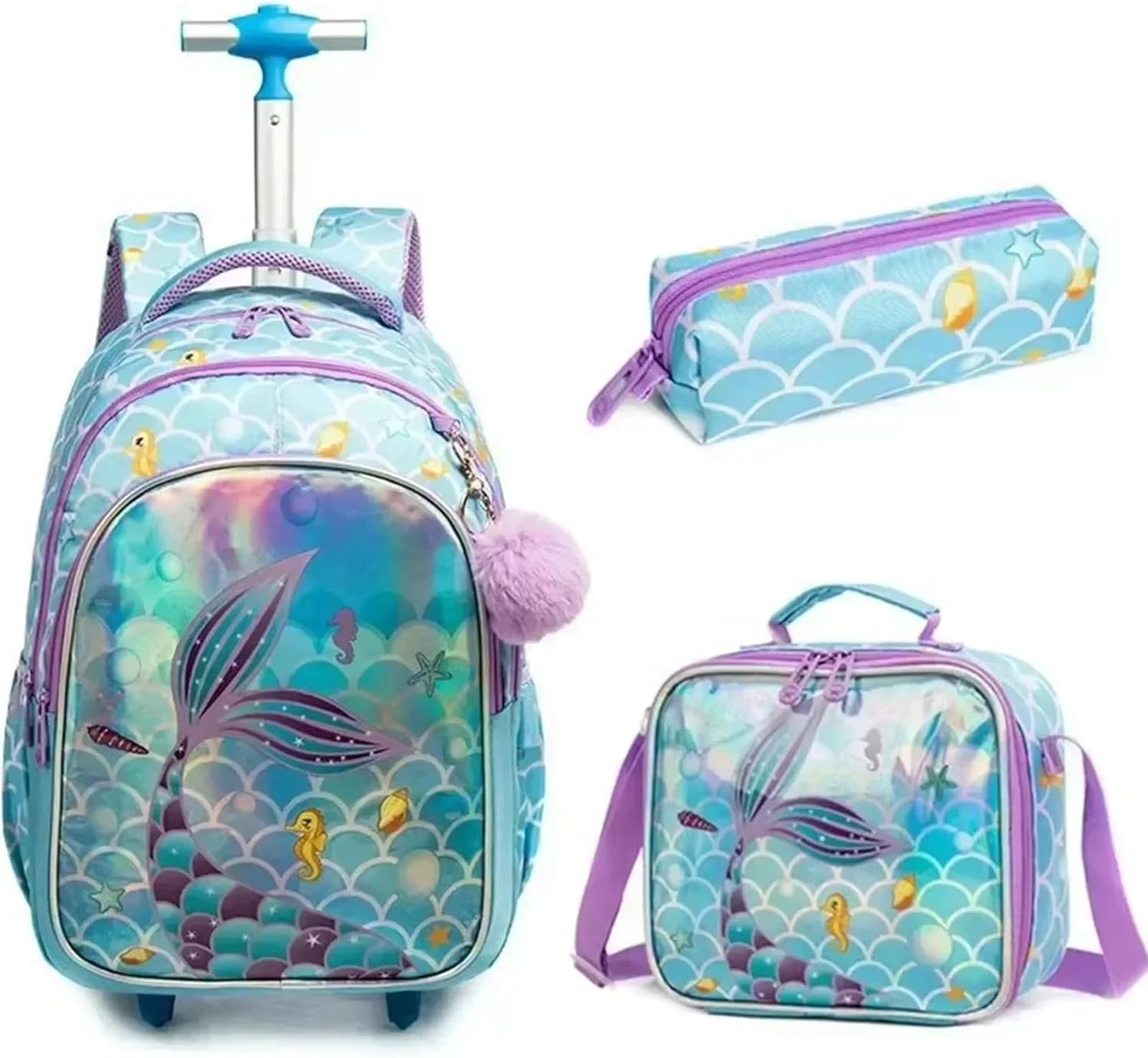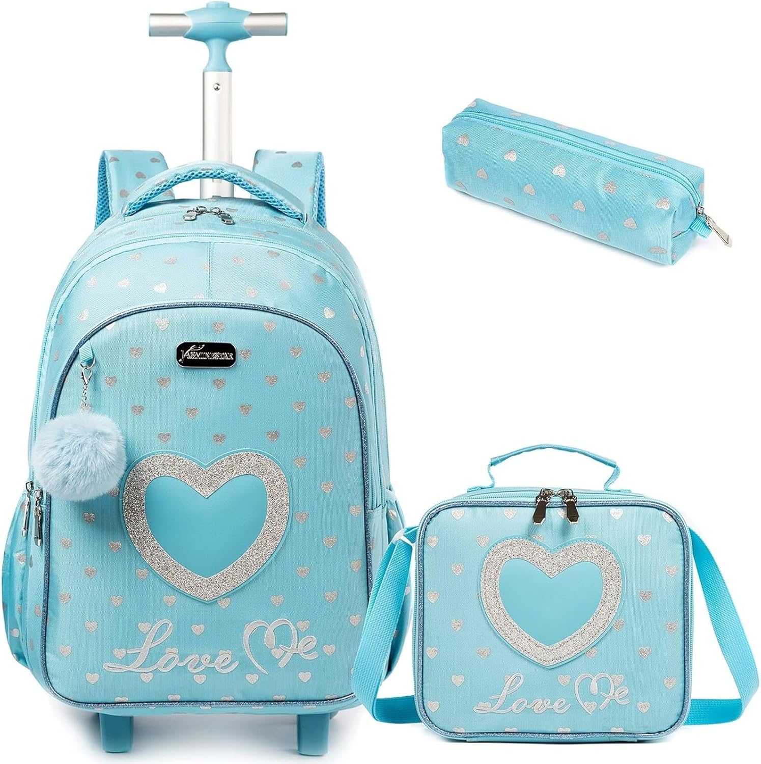 | Embellishment Feature | Butterfly Appliques, Multiple Compartments, Pom Pom, Telescoping Handle, Wheels |