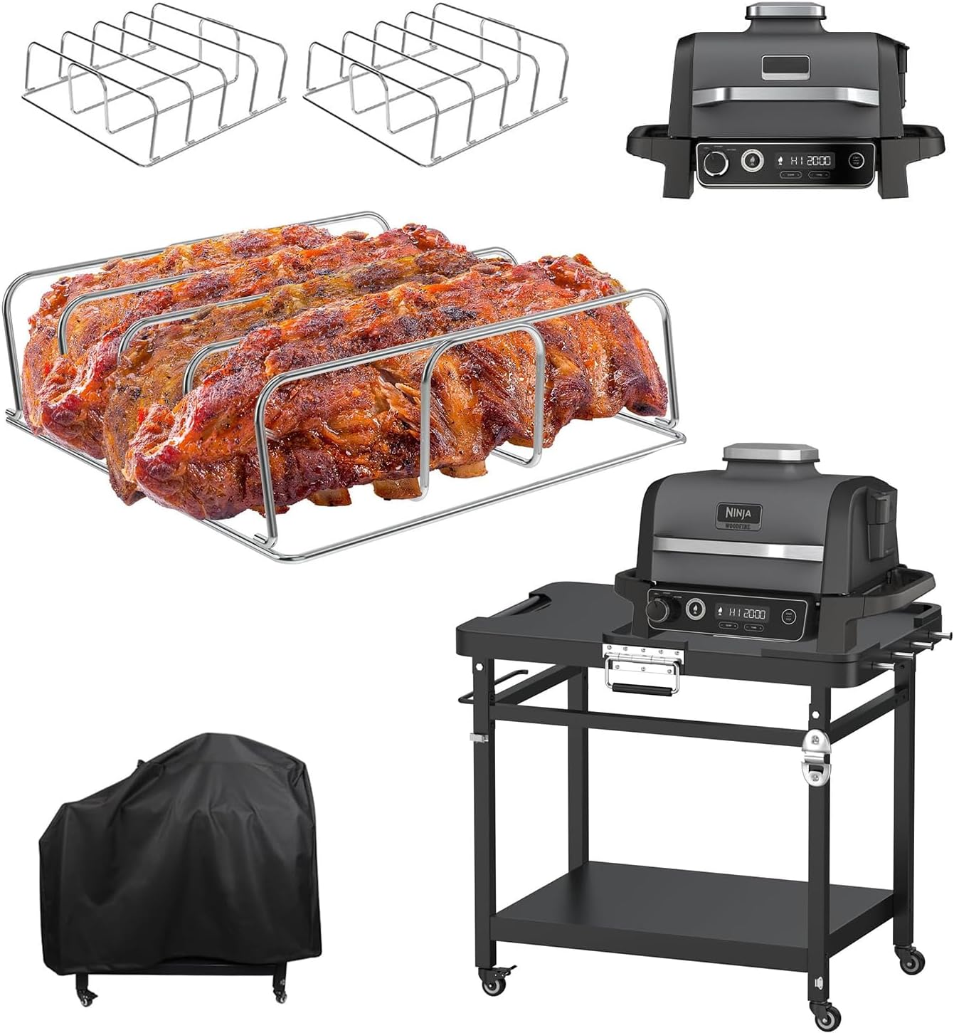 Grill Stand & 2-Pack Rib Rack for Ninja Woodfire OG751/OG700 Series, Woodfire Outdoor Grill Accessories for Ninja 7 in 1 Electric Grills