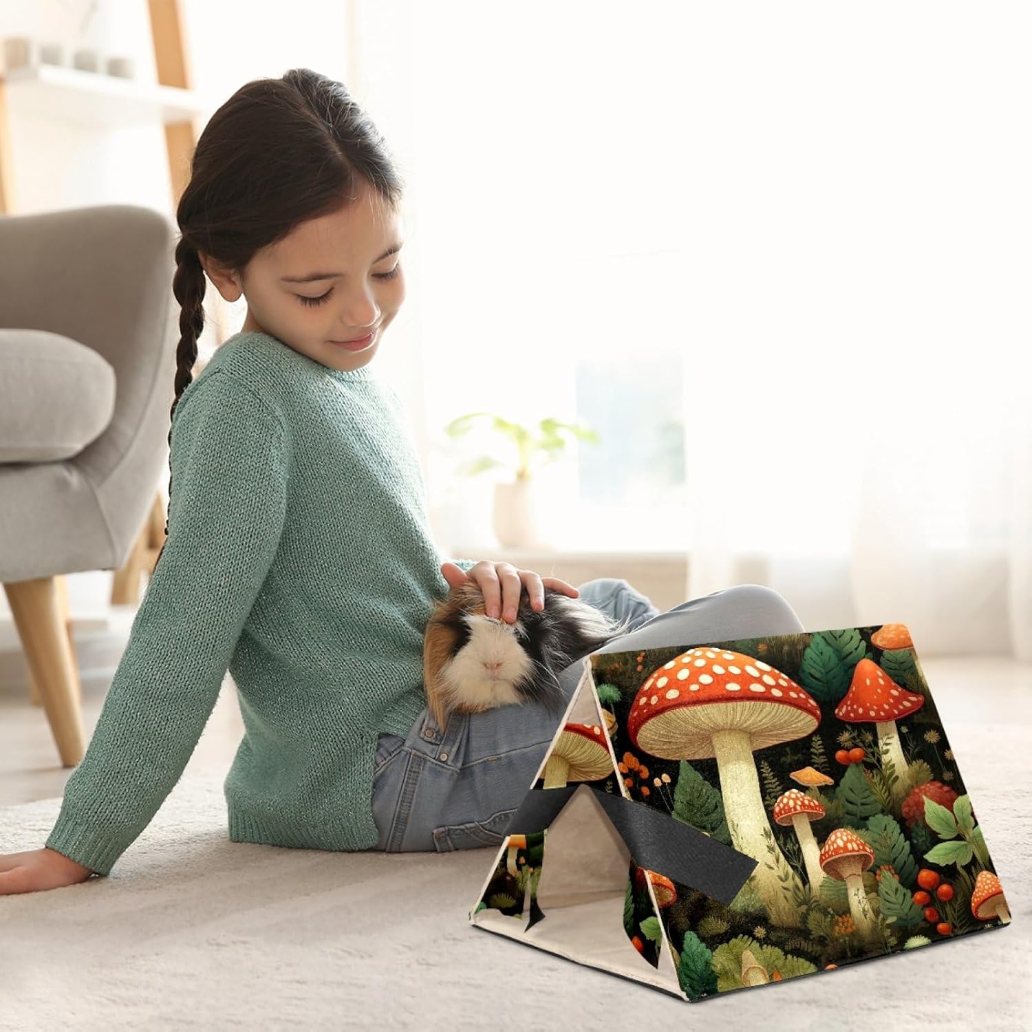 This "Little Hamster Home" is a series suitable for small pets such as hamsters, guinea pigs, rabbits, ferrets, mice, hedgehogs, and chinchillas. It is made of high-quality short velvet fabric and provides a private, warm, and comfortable hiding place, allowing your cute little animals to feel safe. Your baby can play, rest, hide, sleep, or engage in other activities in this safe haven, while also being a warm home. The size of 'Little Hamster House' is 10.2 inches long, 12 inches wide, and 8.5 inches high. The bottom is a foldable PP board, so when not in use, the hamster nest can be folded up without taking up space. By covering it with a layer of blankets, this cabin can become a comfortable hiding place. This small animal bed is made of high-quality soft short velvet fabric, with a sturdy structure that remains stable on the ground and will not collapse on its own. The ultra soft fabric makes your baby feel comfortable and warm in their own cabin. Plush curtains provide a private, warm, and comfortable resting place for your pets, allowing them to feel secure. Specially designed for guinea pigs, hedgehogs, golden bears, sugar kangaroos, hamsters, squirrels, chinchillas, small rabbits, flying dragons, and other small animals. When accidents cannot be avoided, there is no need to worry! This guinea pig bed can be hand washed and machine washed, suitable for air drying.