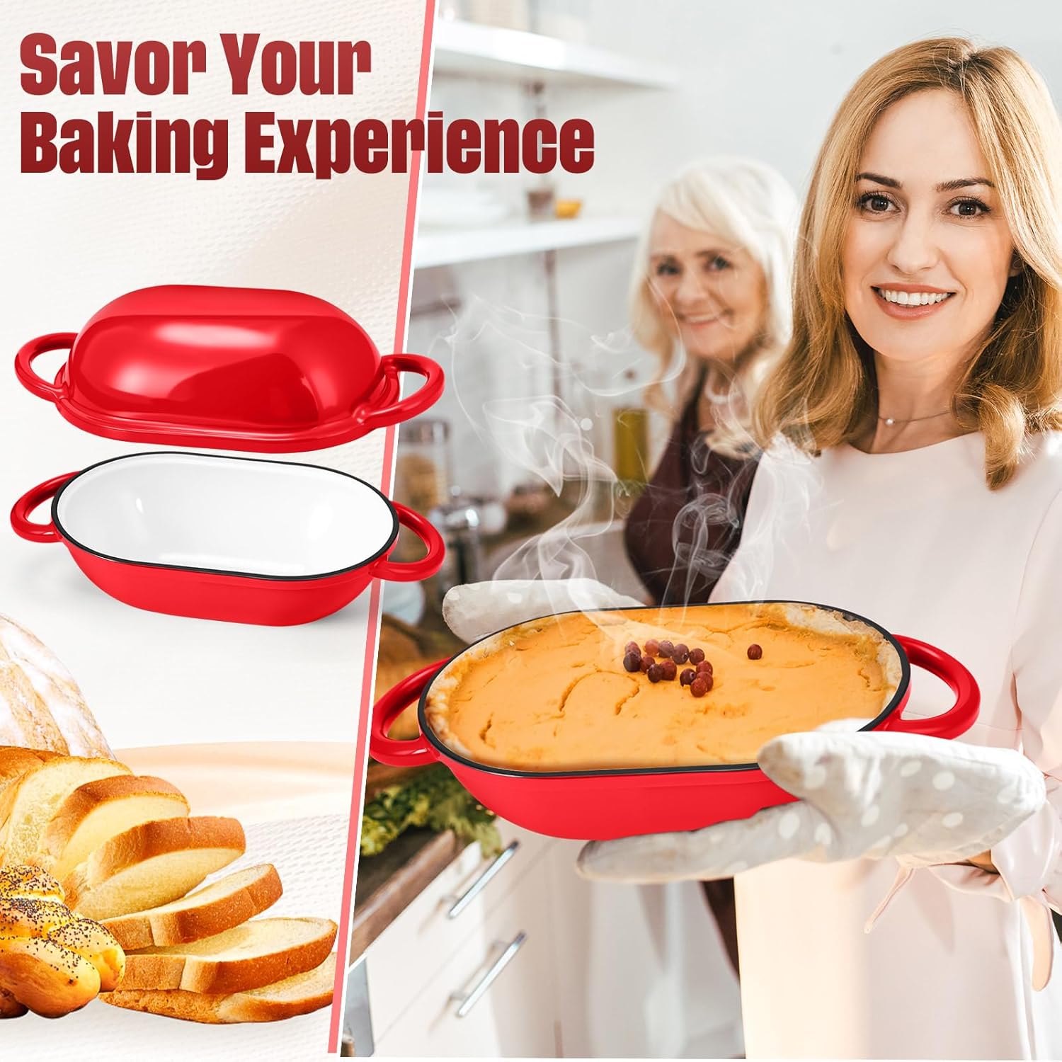 Features: When making toast, it is recommended to brush the bottom of the pan with a thin layer of oil to facilitate demoulding and avoid burning the bottom. Specifications: Material: cast iron Color: red Size: With handles about 12 x 6.5 x 3.15 inches/ 30.5 x 16.5 x 8 cm Package includes: 1 x Enameled oval cast iron dutch oven Notes: Manual measurement, please allow slight errors on size. The color may exist a slight difference due to different screen displays