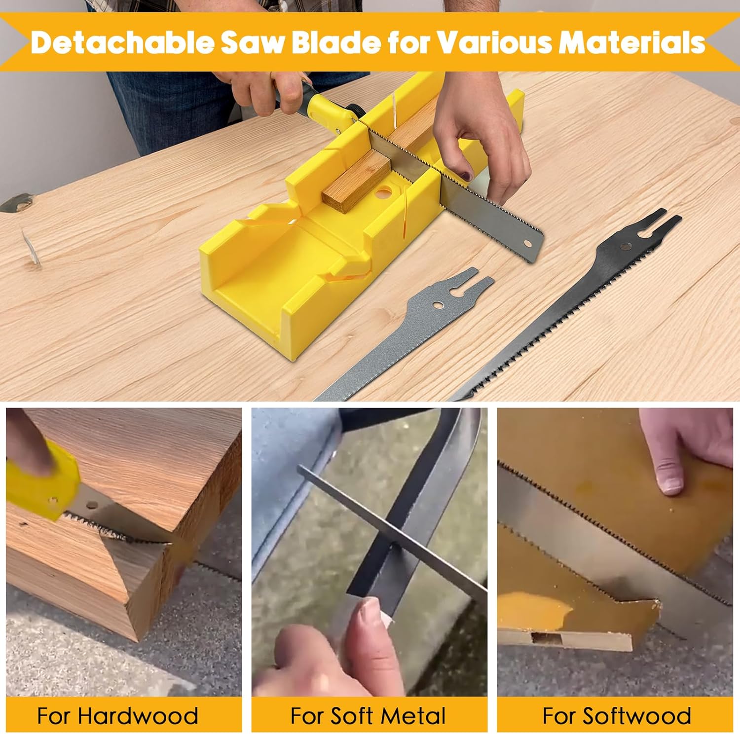 This woodworking bundle includes a 4-piece miter box and saw set with three interchangeable blades and a 4-piece flush trim router bit set. The miter box allows 45°, 90°, and 135° cuts, perfect for flooring, trims, and furniture projects. The Japanese saw and additional fine/coarse-toothed blades handle wood, PVC, MDF, and soft metals. The router bits feature tungsten carbide blades and dual bearings for smooth, precise edging. Ideal for DIY enthusiasts and professionals, this set delivers durability, accuracy, and efficiency in woodworking and home improvement