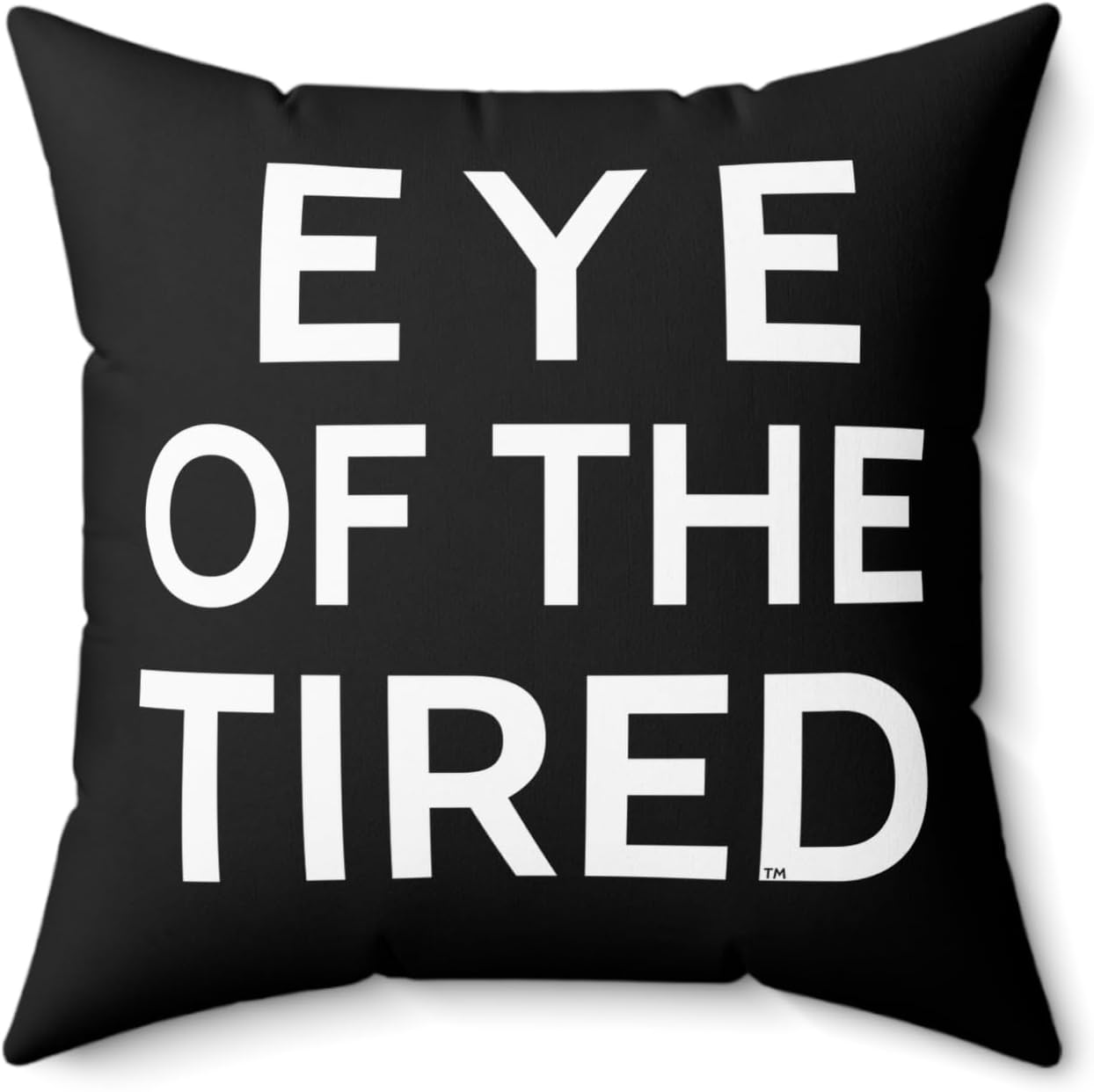 Bring style and comfort to your space with the Eye of the Tired Motivational Pillow—a perfect accent piece for anyone who’s tired but never gives up. Featuring the iconic Eye of the Tired design, this pillow is more than décor—it’s a daily reminder to persevere. Made with a durable 100% polyester cover and filled with plush polyester stuffing, this pillow delivers the ideal balance of softness and support. The double-sided print and concealed zipper create a seamless look, making it a versatile addition to your bedroom, office, or favorite lounge spot. Whether you're a busy parent, student, or professional, this pillow transforms any space into a cozy retreat. It’s available in multiple sizes to fit your needs, from adding charm to a chair to becoming the centerpiece of your sofa.