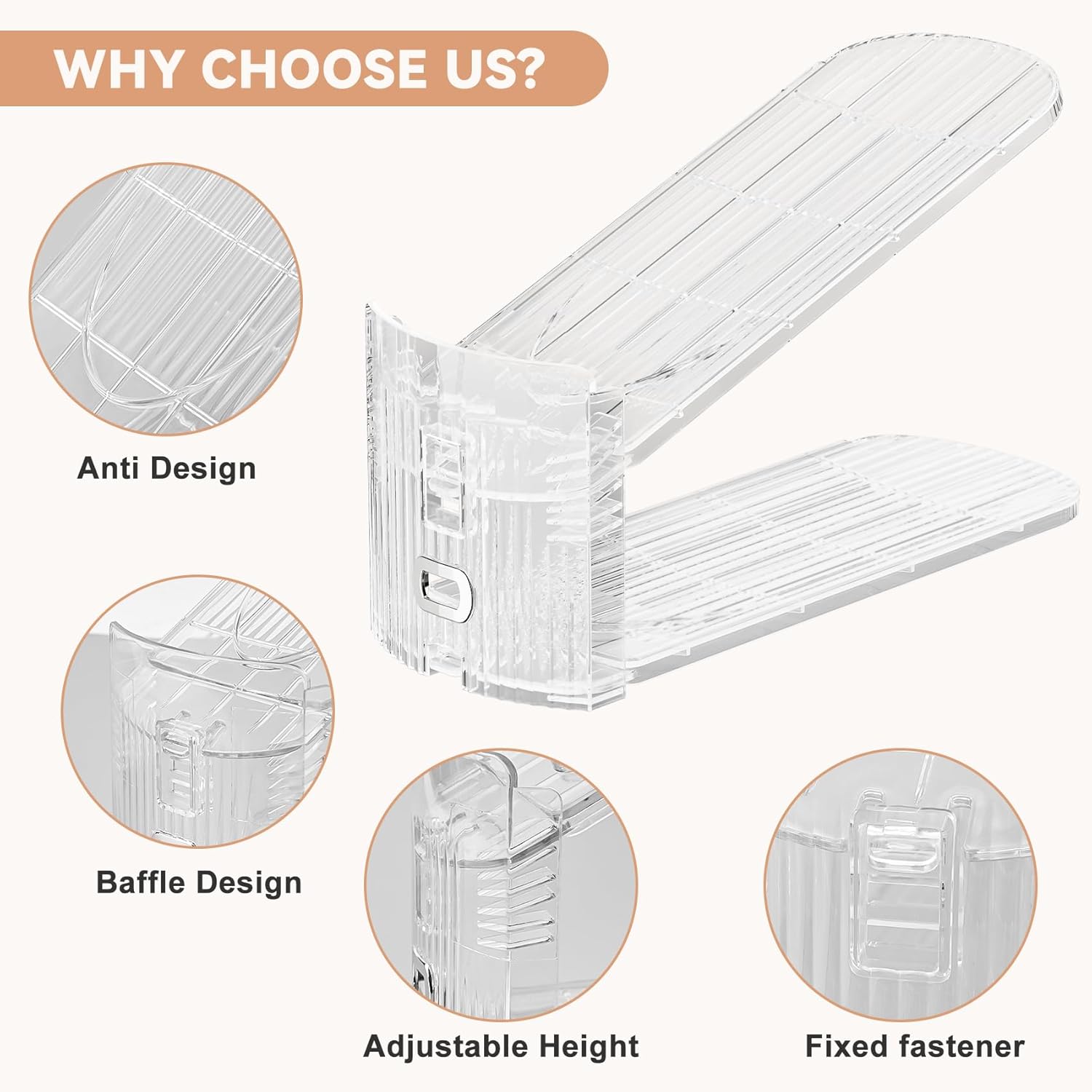 Neprock White Shoe Slots The shoe organizers neatly stack shoes one on top of the other, help save 50% of your storage capacity immediately and help you find the right shoes quickly.The shoe organizer for closet is made of high-quality ABS and durable green-toxic PP to ensure your health and protect the environment.Neprock Acrylic Shoe Slots 0% SPACE-SAVING INNOVATION, Revolutionize cramped spaces with our double-deck stacking design! By optimizing vertical storage, this shoe holder cuts floor space usage in half—perfect for small space, apartments, closets, or entryways.