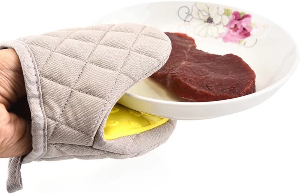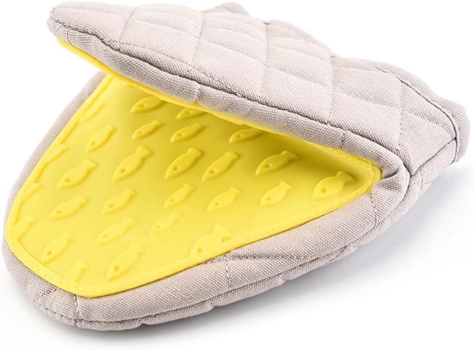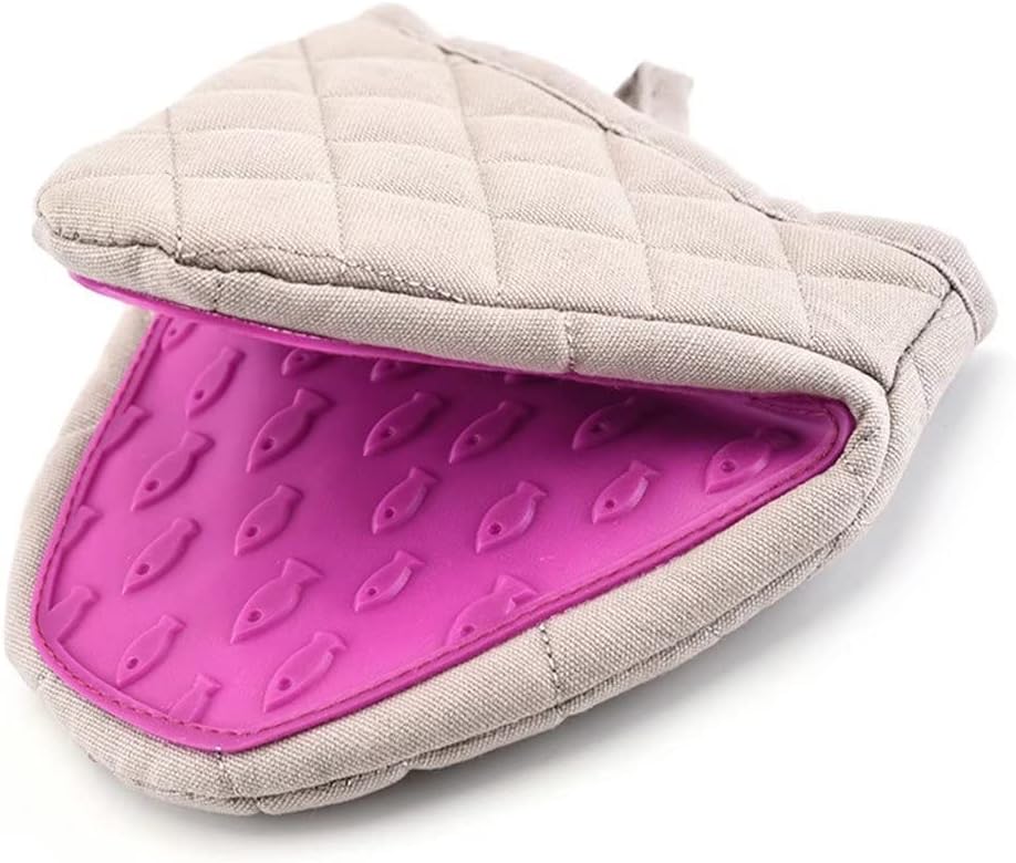 Features: These mini gloves are lightweight and flexible. They have good heat resistance and can be used flexibly in fondue, baked goods and Instant Pots to protect your hands. The silicone mesh has a small fish pattern, and the pattern has good anti-slip performance, ensuring the safety of each food transfer. Glove corner hook design, easy to hang when not in use, easy to store, save space. Silicone non-slip texture, increase friction, items are not easy to slip from hand. Thick and soft, fashion printing, cable protection, gloves are not easy to break, beautiful and practical. Specification; Product name: Silicone anti-scalding gloves. Material: Cotton silicone. Colors; Black, Purple, Orange, Yellow. Product size: 15.5*14.5cm. Weight: 48.5g/pc. Product use: oven, microwave, etc. Note: All dimensions of the product are measured by hand, but please note that there is a certain error, but it does not affect the use. Due to the difference in shooting light and display, there may be slight color difference, please refer to the actual product. Buy with confidence: We offer 24-hour friendly email customer service. If you have any questions, please contact us. We will provide you with the best solution as soon as possible.