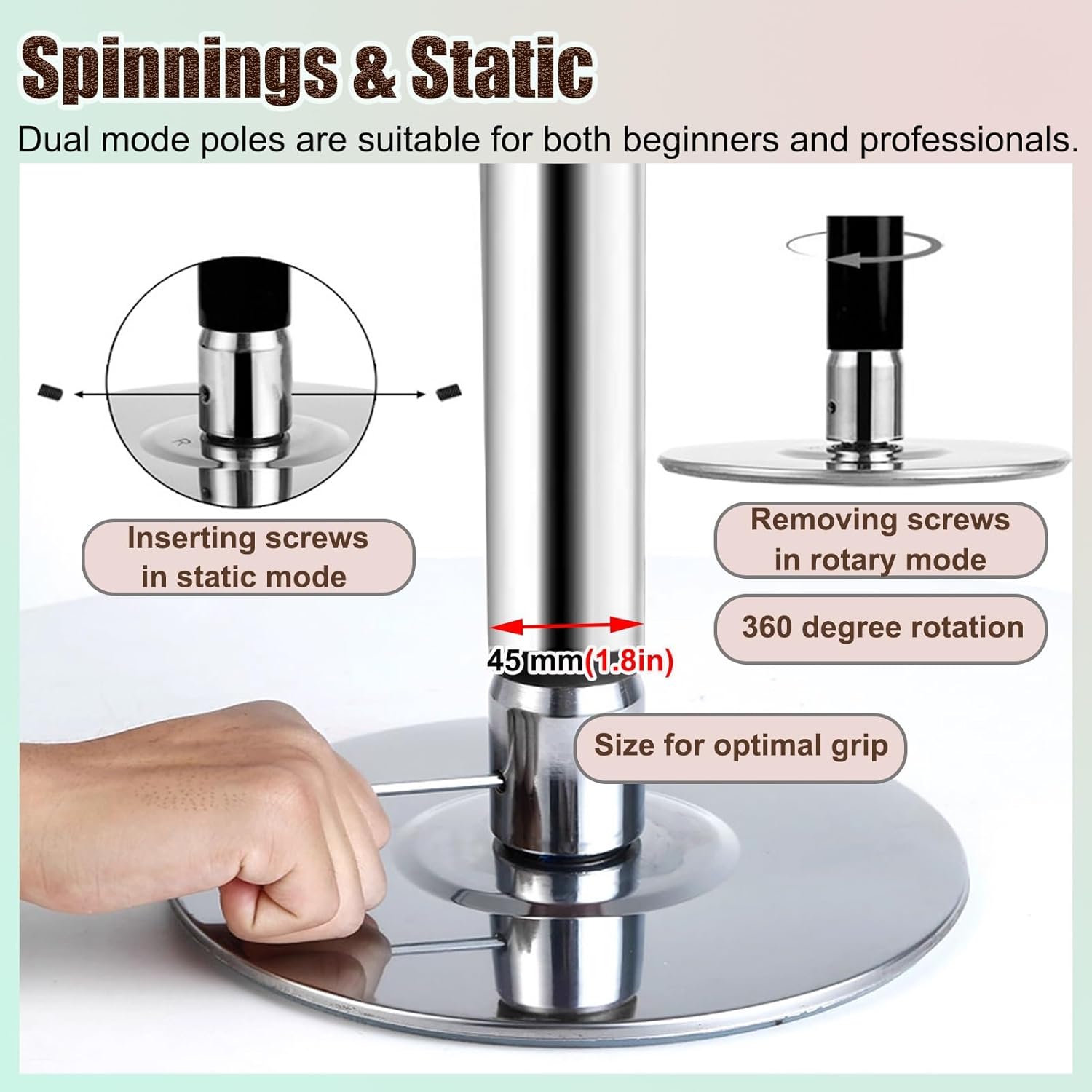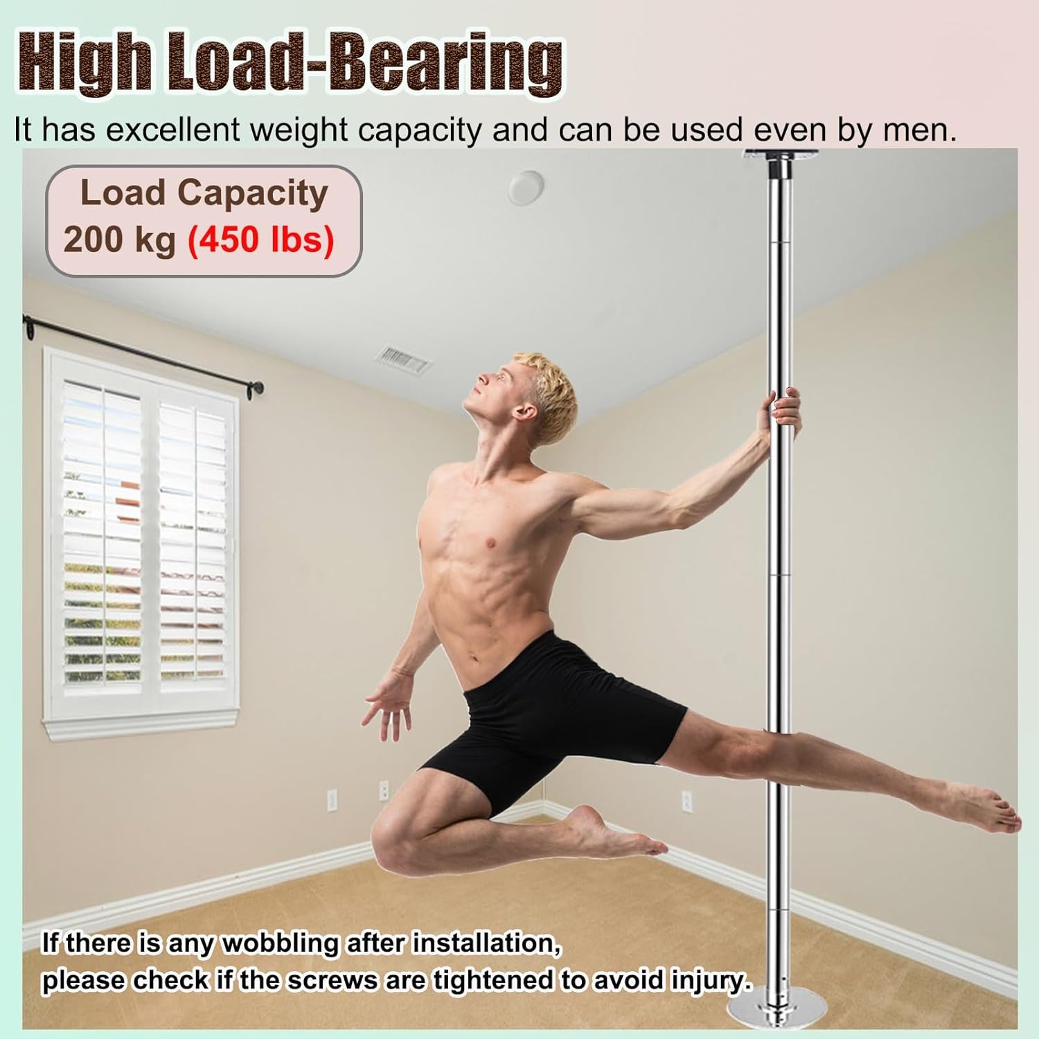 Discover the ultimate dance pole designed for fitness enthusiasts and performers alike, perfect for any space from home studios to professional gyms. This high-quality stripper pole offers a versatile experience, featuring both static and rotating modes to cater to beginners and seasoned dancers. Crafted from durable steel, this pole ensures long-lasting use without rust or color fading, providing excellent load-bearing capabilities for users of all sizes. Installation is straightforward, with an adjustable height ranging from 7.2ft to 13.1ft, making it suitable for various ceiling heights. Whether you’re practicing your routines at home, enhancing your fitness in a yoga studio, or showcasing your skills in a club, this pole adapts seamlessly to your environment. Ensure you have ample space and a solid ceiling before installation for optimal performance. To maintain stability and avoid wobbling, simply follow the installation instructions carefully and use the included tool to secure all screws tightly. If you encounter any issues during setup, reach out for assistance, and we’ll provide the necessary guidance. Unlock your potential with a dance pole that blends functionality and style, encouraging physical fitness and artistic expression. Transform your fitness journey today with a pole that supports your ambitions, whether it’s for dance, ballet, or fitness routines. Experience the joy of movement and elevate your workouts with our premium dance pole, designed to inspire confidence and creativity in every spin and twirl.