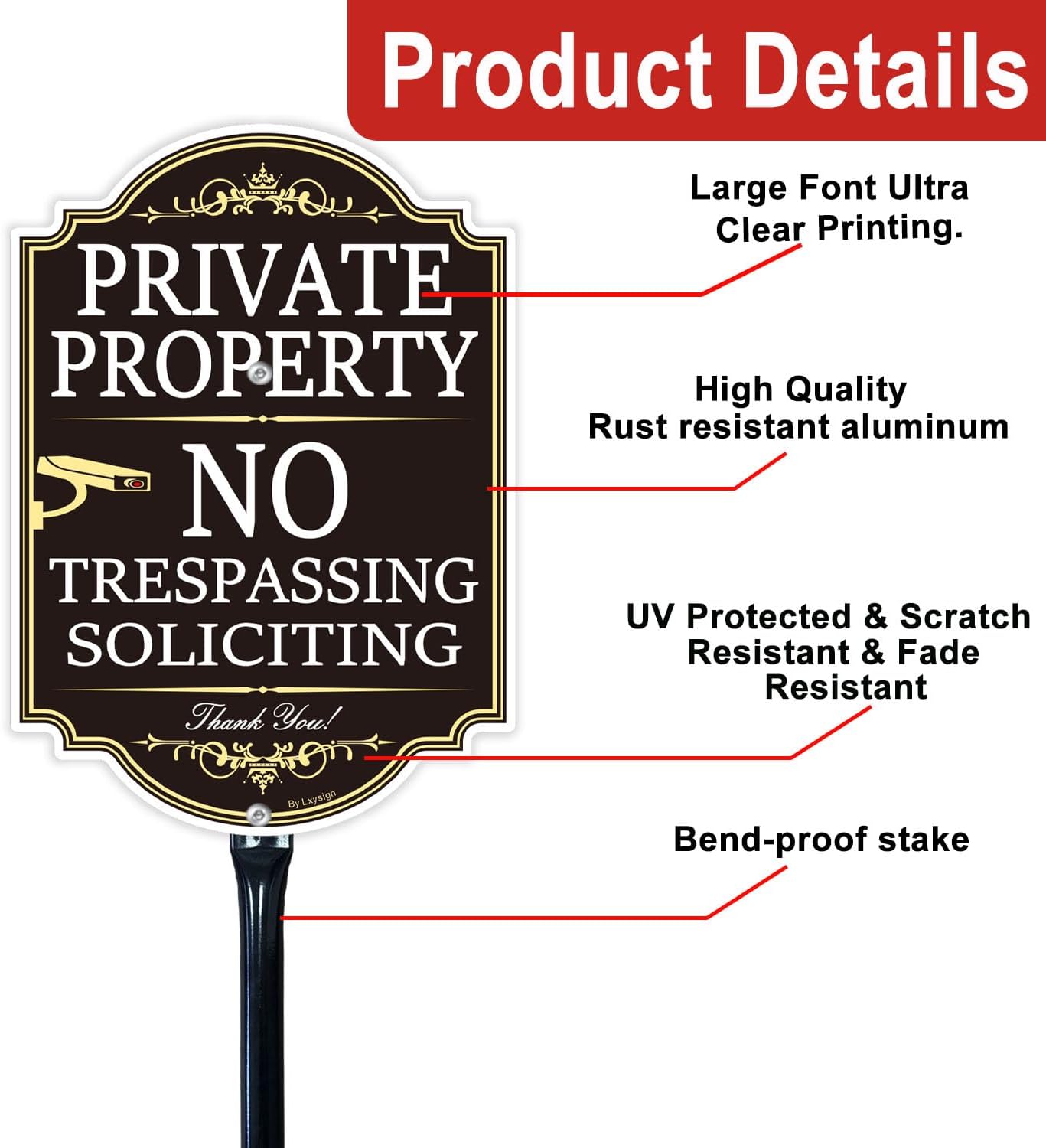 • CLEAR MESSAGING: Bold, easy-to-read text clearly communicates "Private Property" and "No Trespassing/No Soliciting" messages to visitors