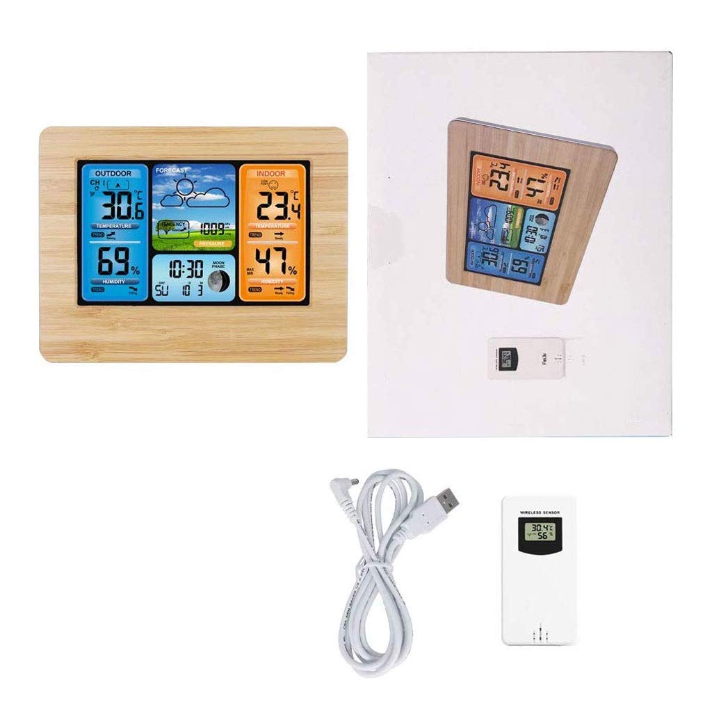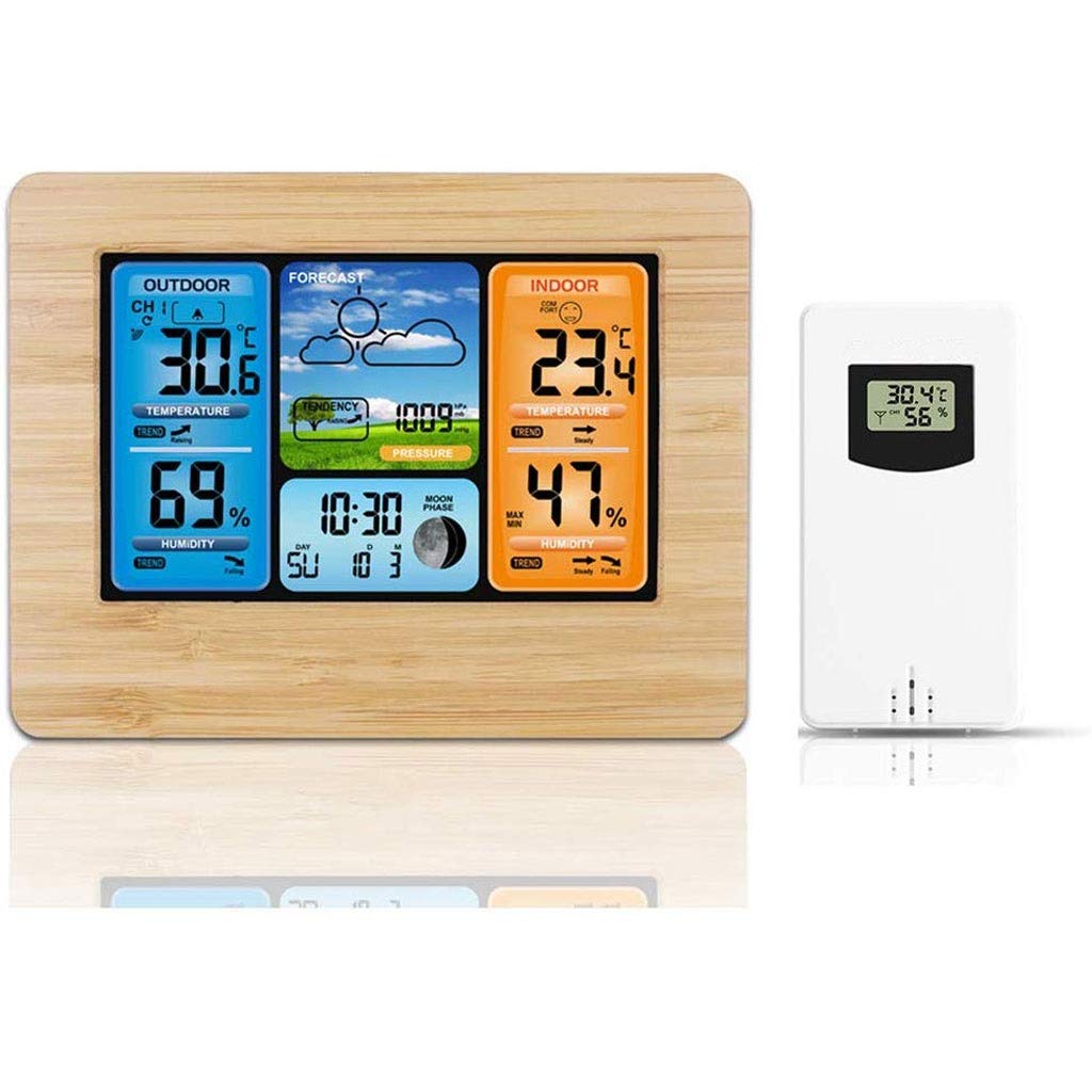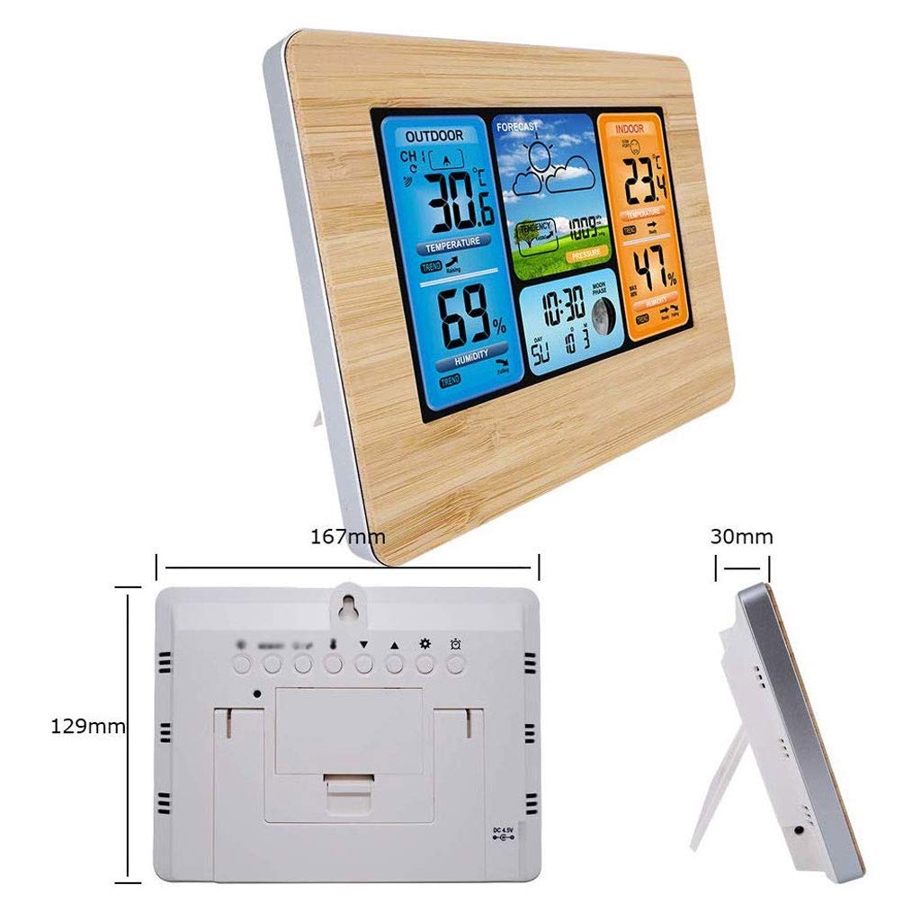 Indoor: -9.9 ℃ ~ 50 ℃ (15 ° F ~ 122 ° F) Outdoor: -20 ° C to + 60 ° C (-4 ° F to 140 ° F) Resolution: 0.1 ° C (0.1 ° F) Humidity detection-Indoor / Outdoor: 20% RH to 95% RH Resolution: 1% RH Barometric pressure detection-600hPa / mb ~ 1100hPa / mb (17.72inHg ~ 32.48inHg) Resolution: 1hPa / mb (0.03inHg) (8) Outdoor high and low temperature and frost point alarm function (9) Temperature /u0026 Humidity Trend Display (10 Record of indoor and outdoor temperature and humidity maximum and minimum values (11) Barometric pressure trend graph display in the past 24 hoursEasy to read from any angle and distance. Portable and lightweight, easy to carry.