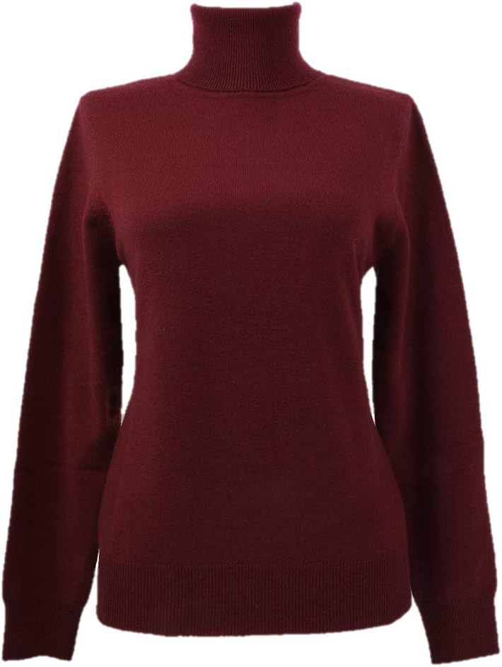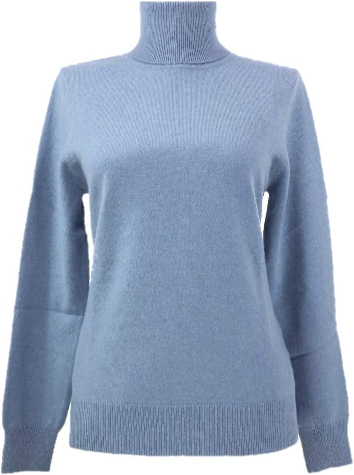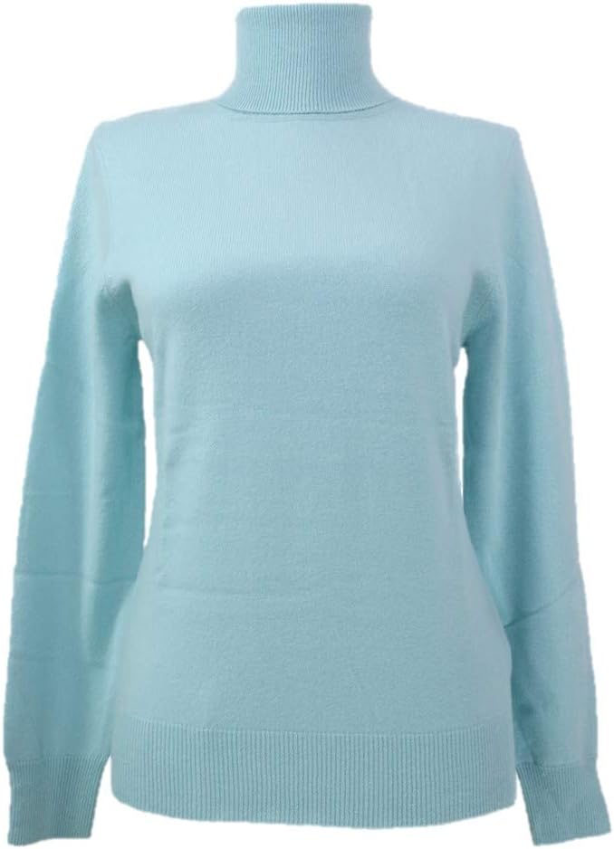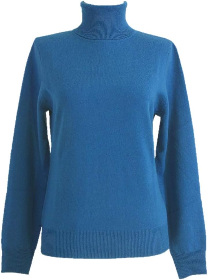 Women's Turtleneck Cashmere Sweater with Long Sleeve. Rib at Neck, Cuffs and Hem. 100% Pure New Cashmere, 2 ply 12 gauge, Soft and Luxury.