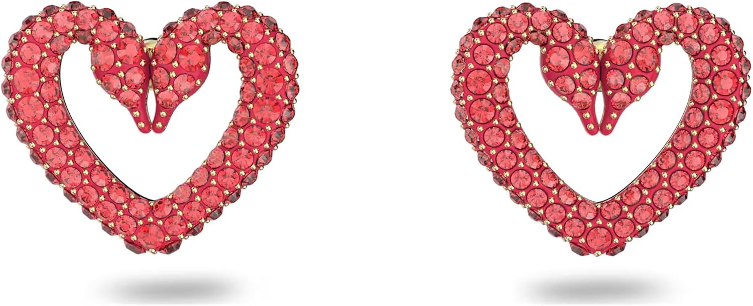 This exquisite earring from the Una series exudes a romantic and charming charm. This earring is crafted with ingenuity, featuring a concealed double swan design to create a heart-shaped shape, adorned with exquisite red crystal inlay that complements the gold toned coating. Can be worn alone or paired with an Una necklace.Size:1.4 x 1.6 cm