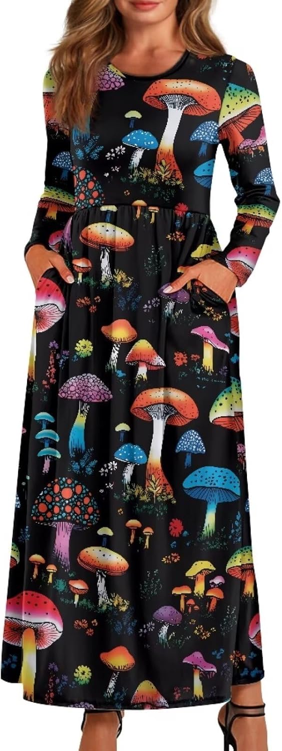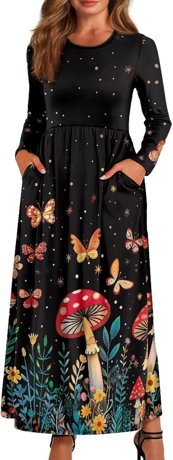 Women's Long Sleeve Dress Crew Neck Pleated A-line Formal Elegant Flowy Long Maxi Dresses Size:S-LENGTH:54.33",BUST: 32.28", WAIST: 25.2",SLEEVE:23.23" M-LENGTH:55.12",BUST: 34.25", WAIST: 27.17",SLEEVE:23.62" L-LENGTH:56.1",BUST: 37.01", WAIST: 29.92",SLEEVE:24.02" XL-LENGTH:56.89",BUST: 39.76", WAIST: 32.28",SLEEVE:24.41" 2XL-LENGTH:57.68",BUST: 42.52", WAIST: 35.43",SLEEVE:24.8" 3XL-LENGTH:58.46",BUST: 45.28", WAIST: 38.19",SLEEVE:25.2" 4XL-LENGTH:58.46",BUST: 48.43", WAIST: 41.34",SLEEVE:25.59" Features Made of polyester fabric, it is light, comfortable and stretchy to wear. Hand washable, do not soak for a long time, do not bleach, and the temperature of the washing liquid should not exceed 45ºC. There are many fashionable patterns to choose from, of course, if you need customization, you can contact us and we will try our best to meet your requirements. This stylish women's round neck maxi dress is suitable for party, daily, vacation, work, outdoor, travel, all seasons. Purchasing Notice Due to the different measurement methods, the error within 1-2cm is normal.