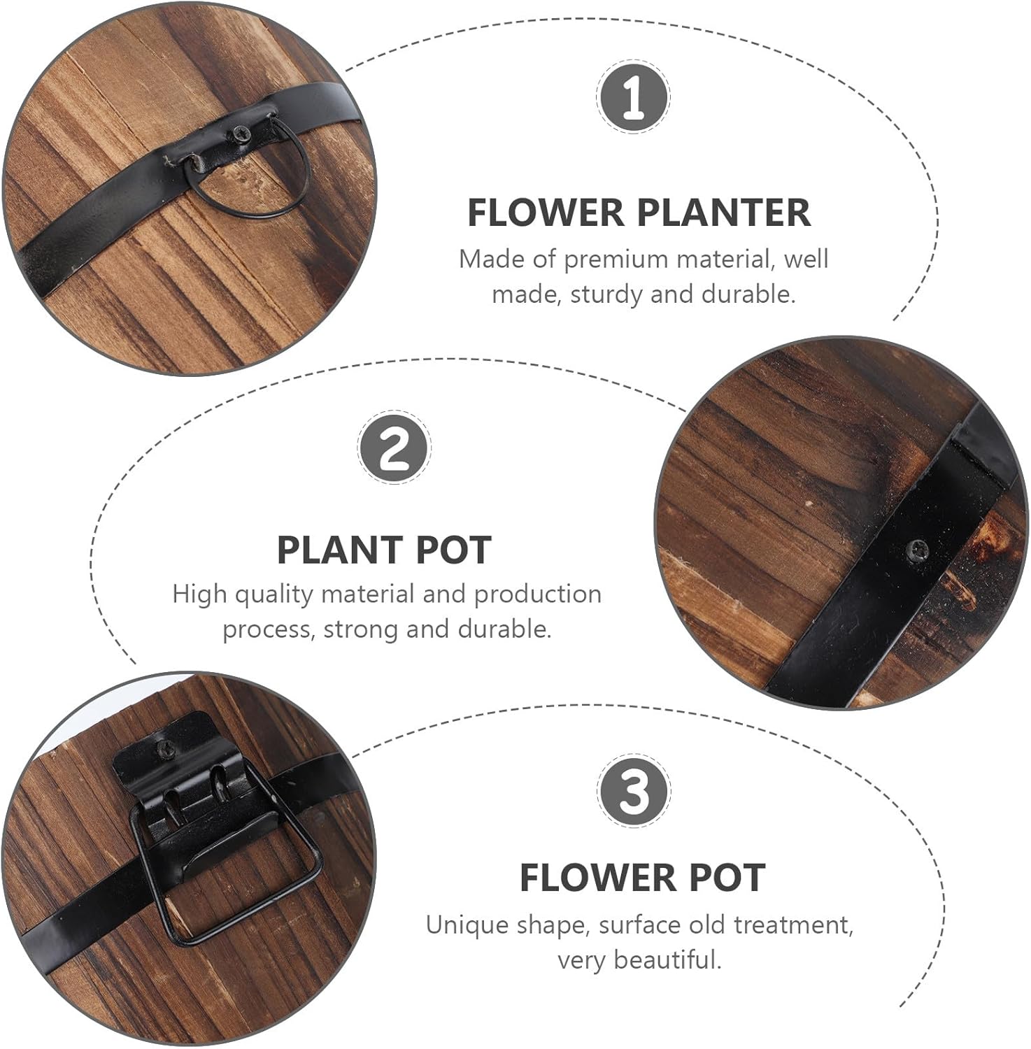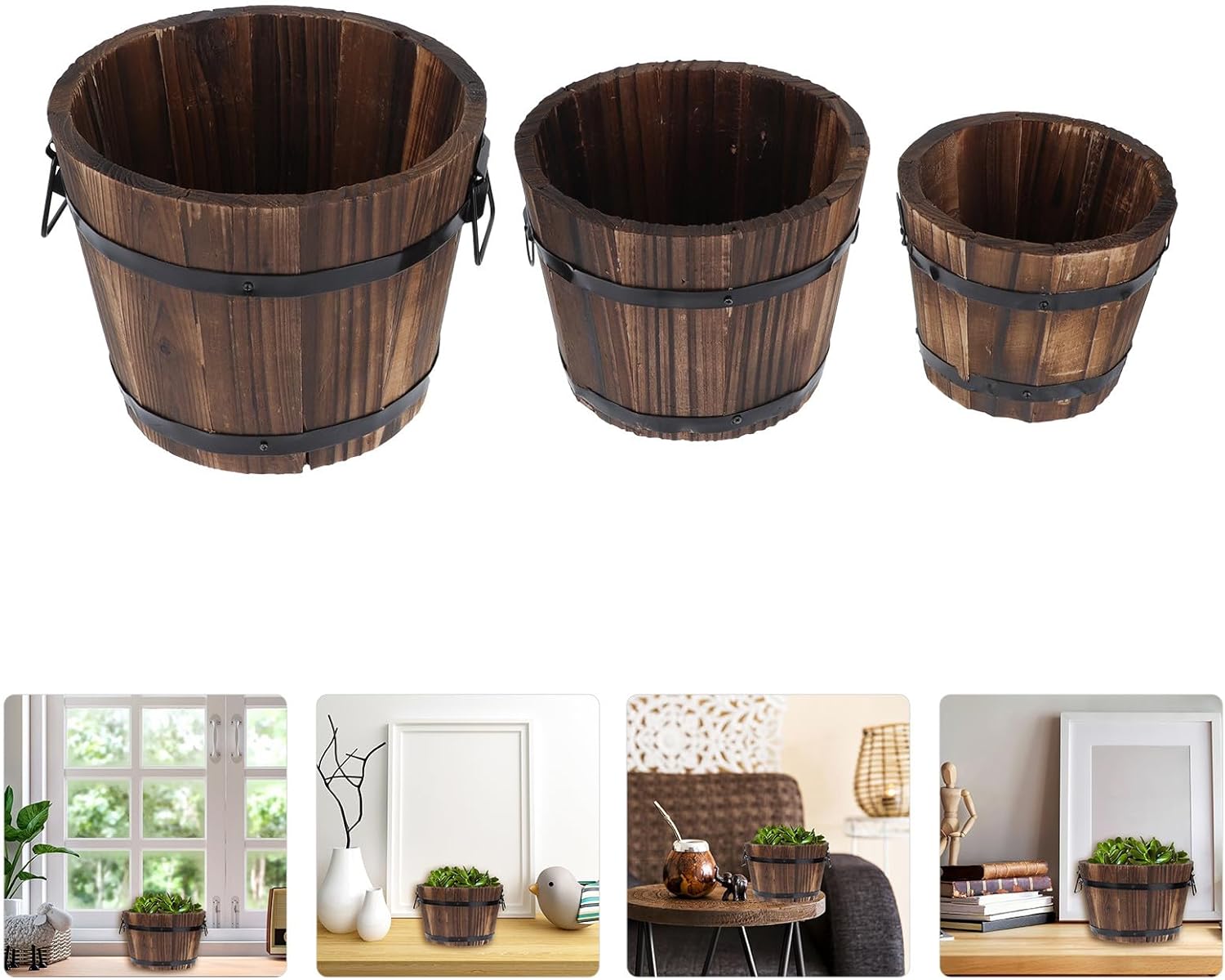 Package List 3 x Wooden Barrel Flowerpot Features -Size : 15x12x13cm/5.90x4.72x5.12inch -Material: Wooden -Product Info:Carbonized wood flower pot -Size L: 19.00X15.00X14.00cm/7.47X5.89X5.50inch -Color: Coffee -Size S: 12x9x10cm/4.72x3.54x3.93inch - Add uniqueness to your home with plants, flowers and solid wood flowerpot. - for your partner, lover, , siblings, and friends Plant Pot. - Easy to clean, dry off and maintain, save your efforts and money wood bucket planter. - Display the naturalism style, show your house decoration taste flower pot bucket. - Can be used with , flowers, succulents, potted plants and more wooden flower vase.Goods Descriptionflower pot outdoor Made of material, durable enough for your long-term use.handmade wooden planter Practical and decorative design, ensures its popularity.rustic succulent planter wooden barrel Searching of a decoration flowerpot? Our wooden barrel flowerpots will be the for you